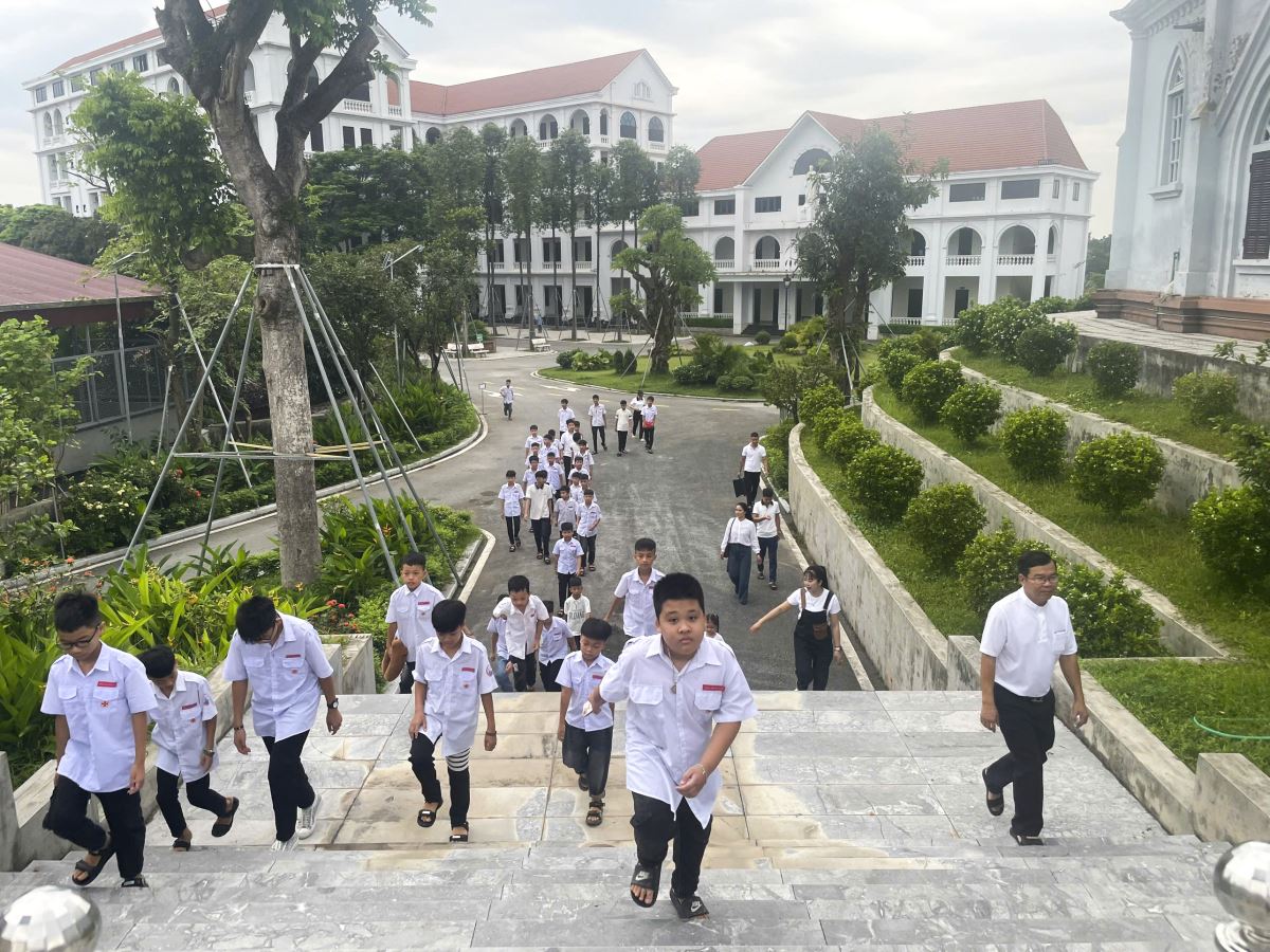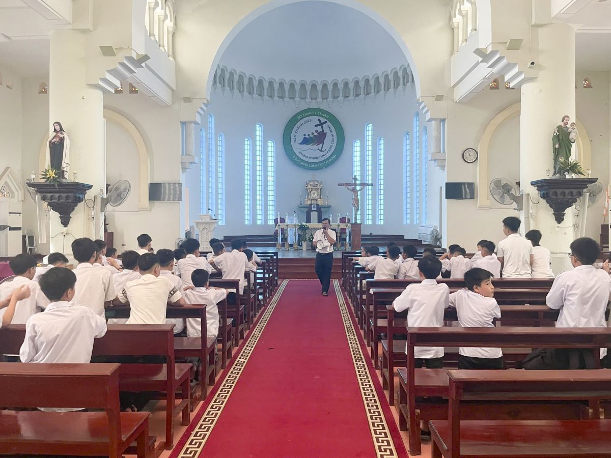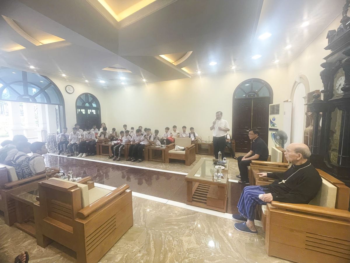 Sau đó, đoàn hành hương đến thăm Trung Tâm Mục Vụ Hà Thạch, nơi học tập và tu luyện của các chú khối Tiền chủng viện. Qua đó, nhóm lên một ngọn lửa yêu mến ơn gọi tu trì cho các các em Lễ sinh và Tu sinh.