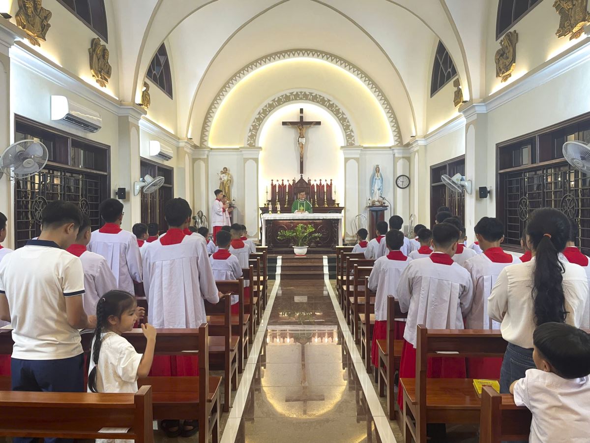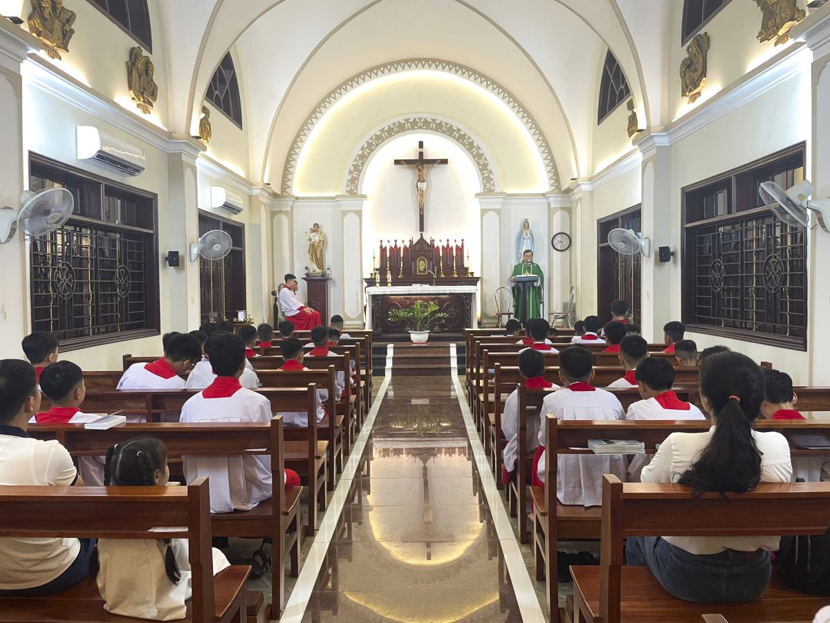 Thánh Lễ sốt sắng và trang nghiêm do Cha xứ Giuse chủ tế đã diễn ra trong không gian thánh thiêng và thinh lặng tại nhà nguyện của Toà Giám Mục. Đầu lễ, cha xứ chia sẻ nhà nguyện là nơi quý Đấng dâng lễ và cũng là nơi quý Đức Cha cầu nguyện sau những chuyến đi thăm mục vụ tại các vùng cao.