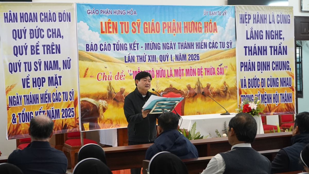 Buổi gặp mặt quy tụ gần 400 tu sĩ đến từ 25 hội dòng, tu đoàn, tu hội và hiệp hội, đang hiện diện và phục vụ trên khắp cánh đồng truyền giáo rộng lớn của Giáo phận Hưng Hóa. Đặc biệt, chương trình có sự hiện diện của Đức cha Đaminh Hoàng Minh Tiến – Giám mục Chính tòa Giáo phận Hưng Hóa, cùng Đức cha Phụ tá Phaolô Nguyễn Quang Đĩnh, như dấu chỉ sinh động của sự hiệp thông và sự quan tâm mục tử dành cho đời sống thánh hiến trong Giáo phận.