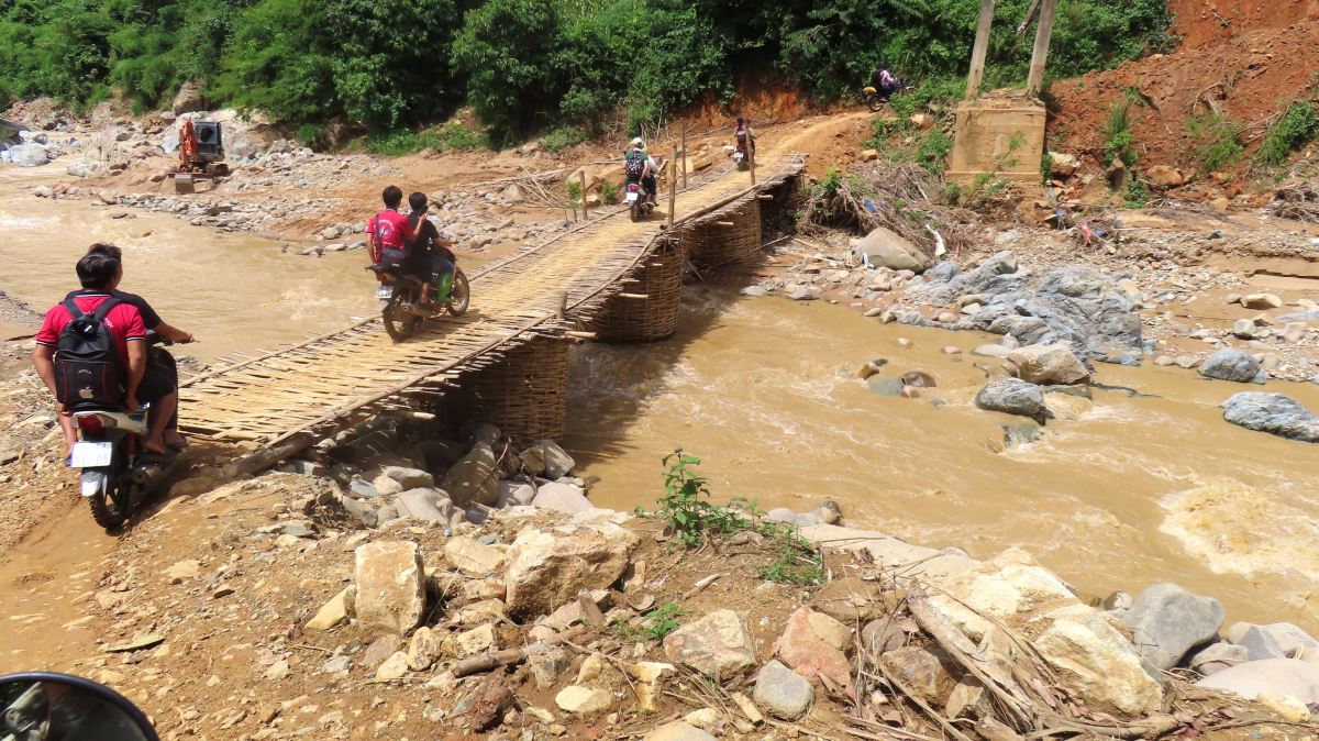 Cuộc hành trình dài khoảng 300km đã để lại cho chúng tôi nhiều ấn tượng sâu sắc! Để có thể vào giáo xứ Tạng Sỏn, chúng tôi được chở trên những chiếc xe máy bởi những chú tài xế rất chuyên nghiệp, con đường quanh co, gập ghềnh có nơi chỉ được kê được một miếng bê tông để xe qua, chúng tôi ấn tượng hơn khi đi qua một chiếc cầu dài khoảng 10m được đan bởi những lát tre mỏng manh và lộ rõ vẻ mạo hiểm, có những khúc đường rất khó đi với nhiều rãnh sâu và chỉ còn vết đủ 1 bánh xe.