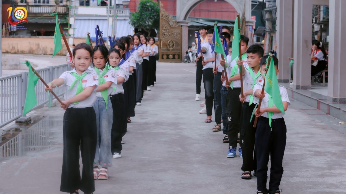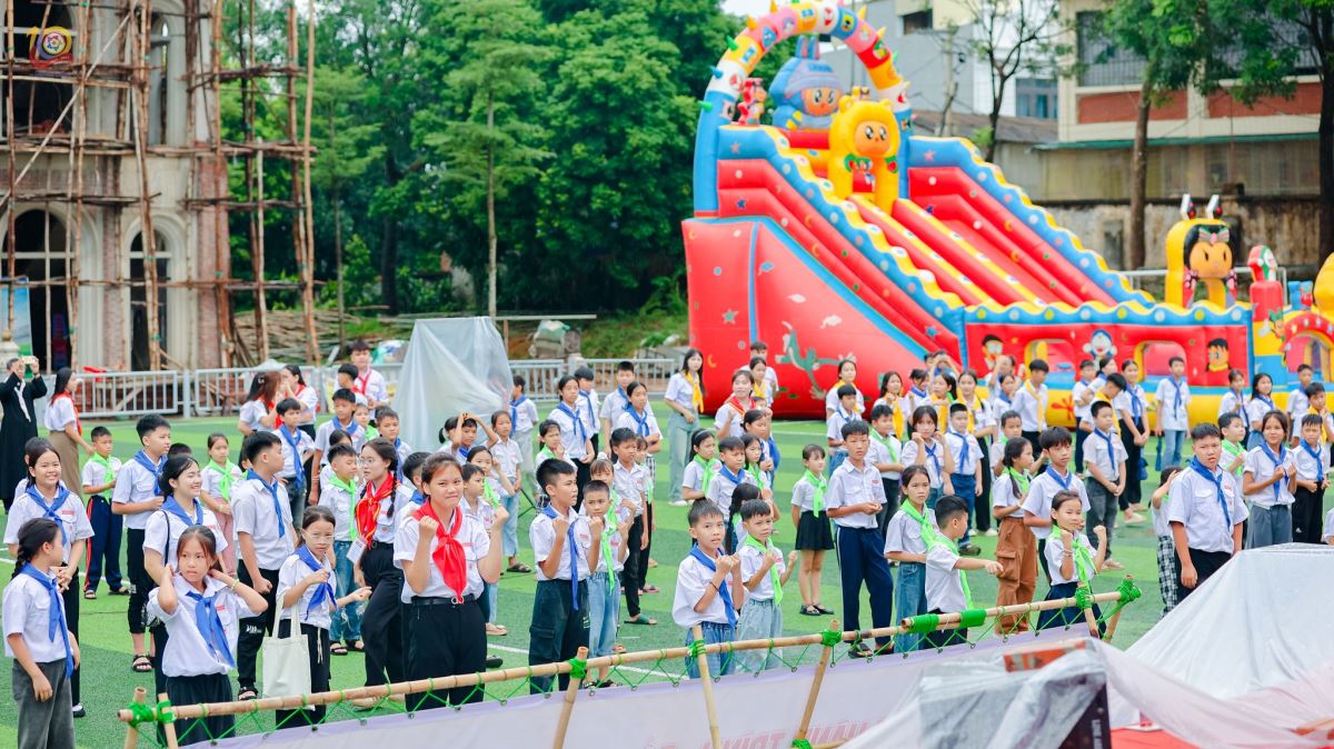 Tiếp nối là cuộc thi “Rung Chuông Vàng” diễn ra thật hào hứng. Mỗi câu hỏi được đưa ra đều mang đến bầu khí hồi hộp, gay cấn và tiếng cổ vũ sôi động. Đây không chỉ là sân chơi kiến thức, mà còn là dịp để các em thể hiện sự nhanh nhẹn, trí tuệ cùng bản lĩnh tự tin của mình.