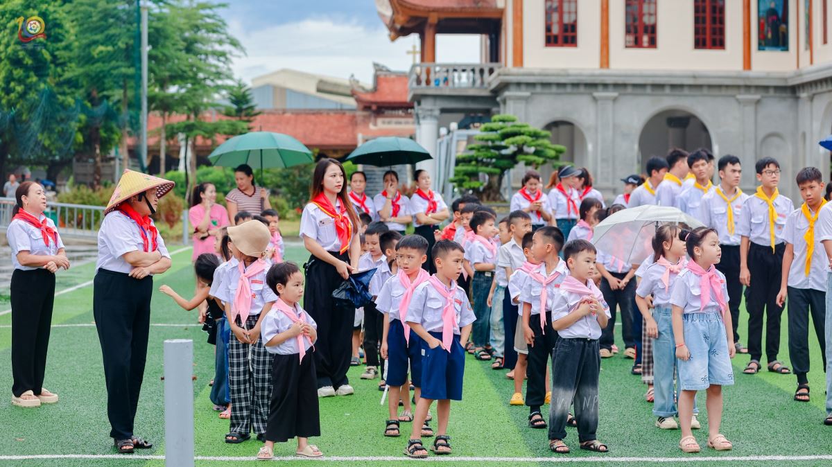 Dù trời có đổ mưa, nhưng không khí nhiệt thành, rực lửa của các em thiếu nhi, các anh chị huynh trưởng và cộng đoàn vẫn lan tỏa tràn đầy.