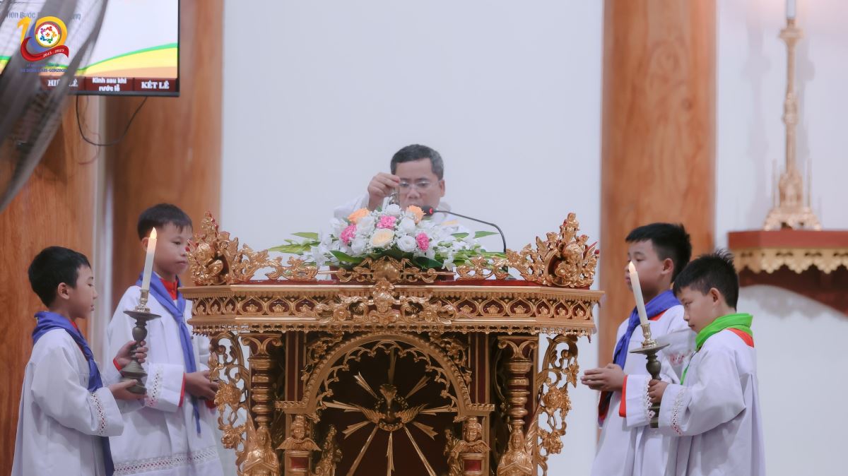 Đỉnh cao thiêng liêng của ngày mừng chính là Thánh lễ tạ ơn. Trong bầu khí trang nghiêm và sốt sắng, cộng đoàn cùng hiệp dâng Thánh lễ để tạ ơn Chúa vì 10 năm hồng ân của Xứ đoàn, và cầu xin Ngài tiếp tục đồng hành, gìn giữ, chúc lành cho hành trình phía trước.