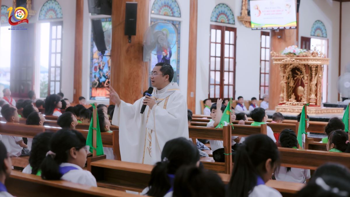 WGPHH – Chúa Nhật, ngày 28/9/2025, trong niềm hân hoan và tâm tình tạ ơn, giáo xứ Cần Kiệm long trọng tổ chức thánh lễ mừng quan thầy và kỷ niệm 10 năm thành lập Xứ đoàn Thiếu Nhi Thánh Thể Louis Gonzaga với chủ đề: “Thiếu Nhi Thánh Thể Tiến Bước Trong Hy Vọng”.