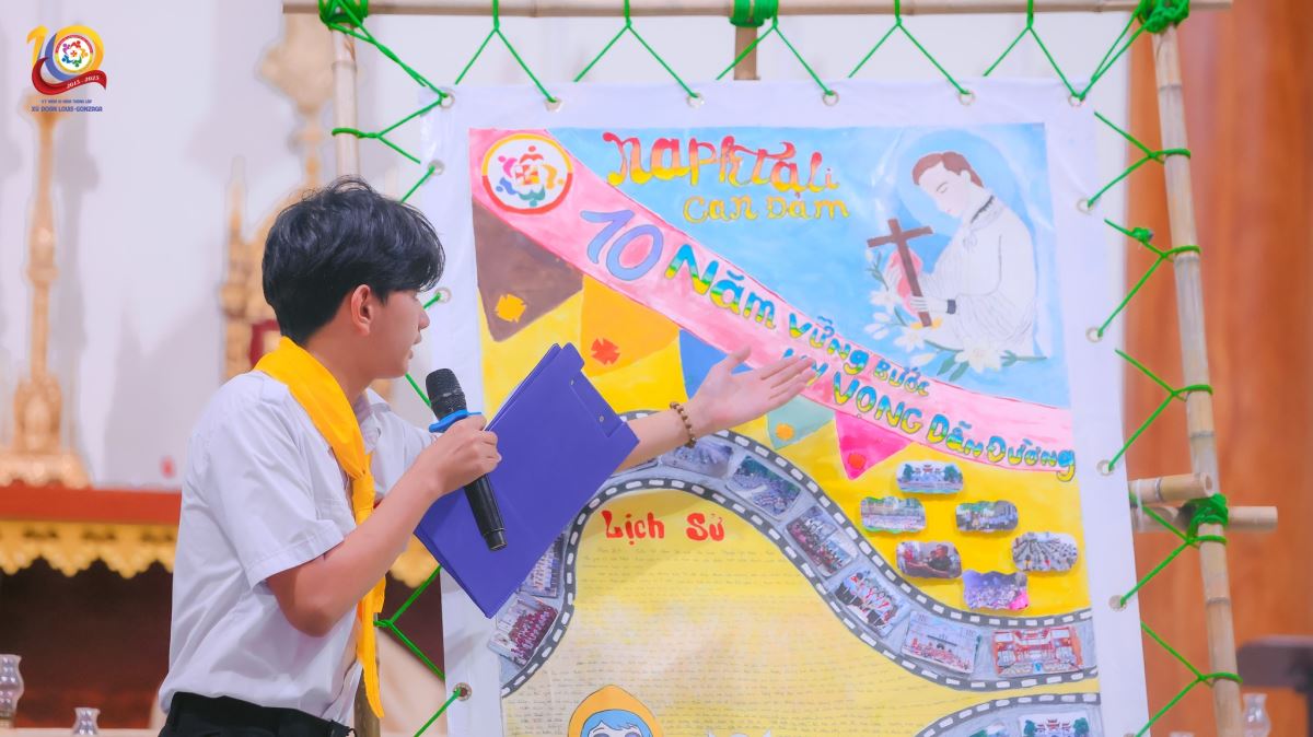 Niềm vui tiếp tục được nối dài trong cuộc thi báo tường, nơi những sắc màu rực rỡ, dòng chữ sáng tạo, ý tưởng phong phú đã tái hiện hành trình 10 năm đầy yêu thương và cống hiến. Mỗi tờ báo không chỉ là tác phẩm nghệ thuật, mà còn là một cuốn “nhật ký sống động” của Xứ đoàn.