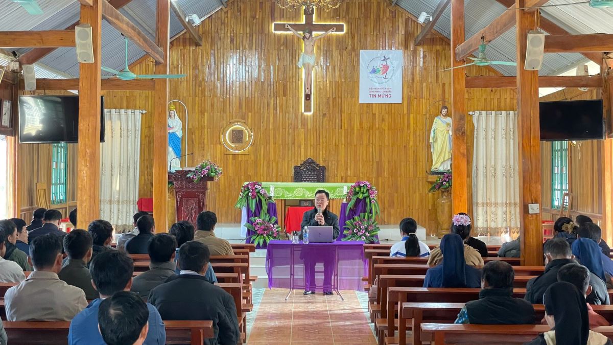 Trong bài giảng, Cha Giuse Sang Đăm Khang, CM, nhấn mạnh đến căn tính của người tông đồ: ra đi, loan báo Tin Mừng và trở nên chứng nhân cho Chúa trong mọi hoàn cảnh của cuộc sống.