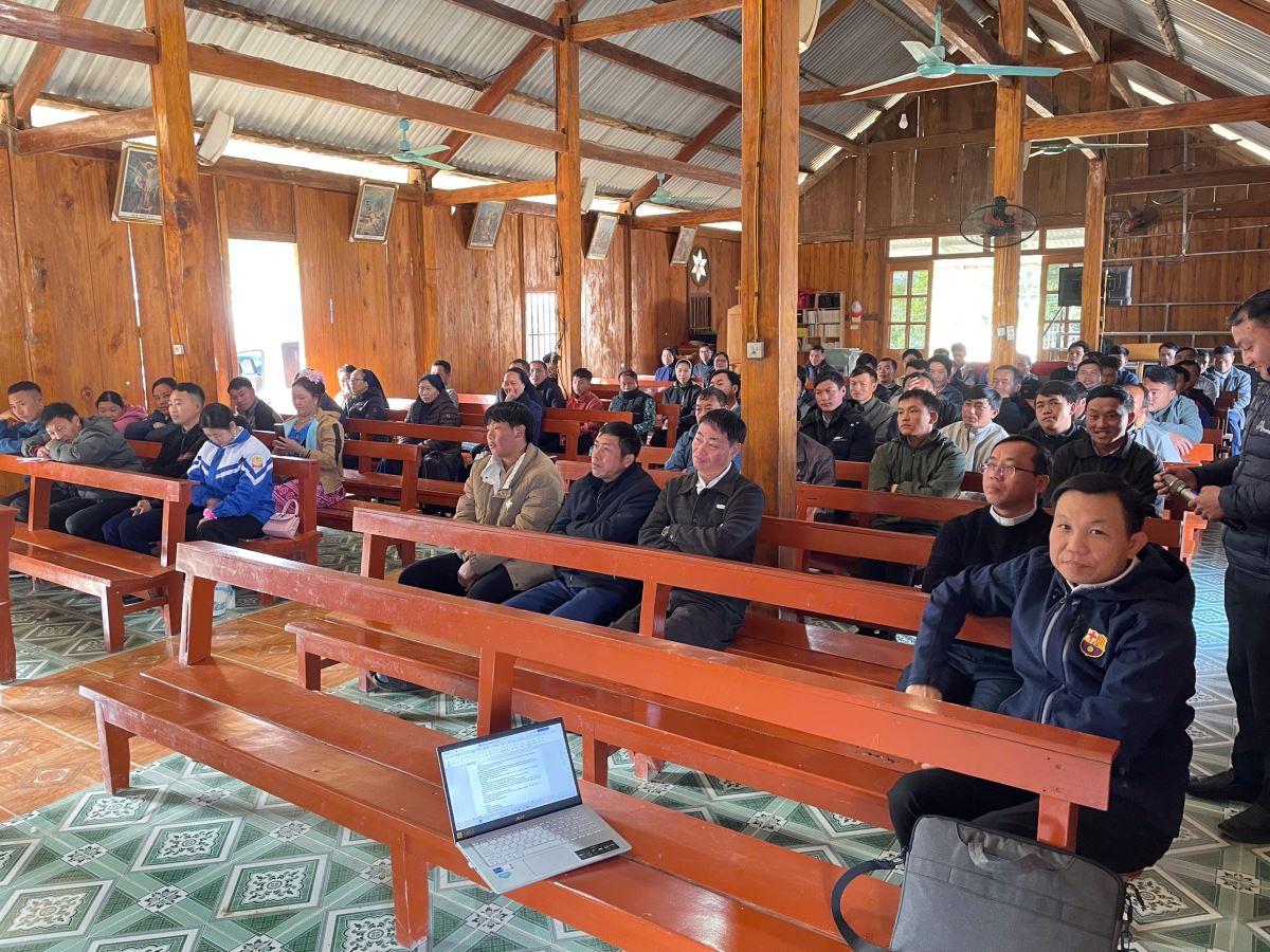 WGPHH - Sáng ngày 02.12.2025, tại giáo xứ Phình Hồ, nhóm tông đồ của giáo hạt Nghĩa Lộ đã tổ chức ngày gặp mặt thường niên dưới sự hướng dẫn của Cha Quản hạt Giuse Nguyễn Văn Thành và Cha Giuse Sộng A Tống – phụ trách Ban Truyền giáo của giáo hạt. Tham dự chương trình còn có sự hiện diện của quý Cha, quý Thầy mục vụ, quý Dì và 49 thành viên (trong tổng số 58 thành viên) thuộc các giáo xứ có đồng bào H’Mông sinh hoạt trong giáo hạt.