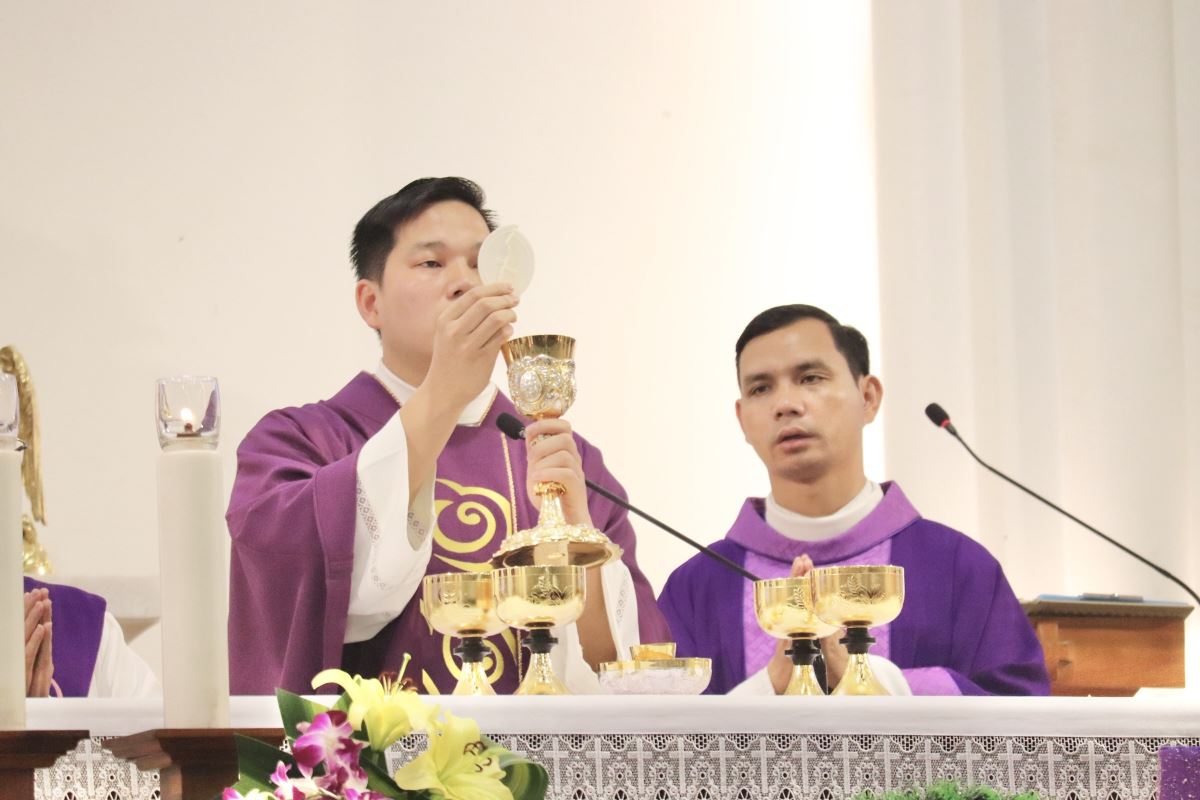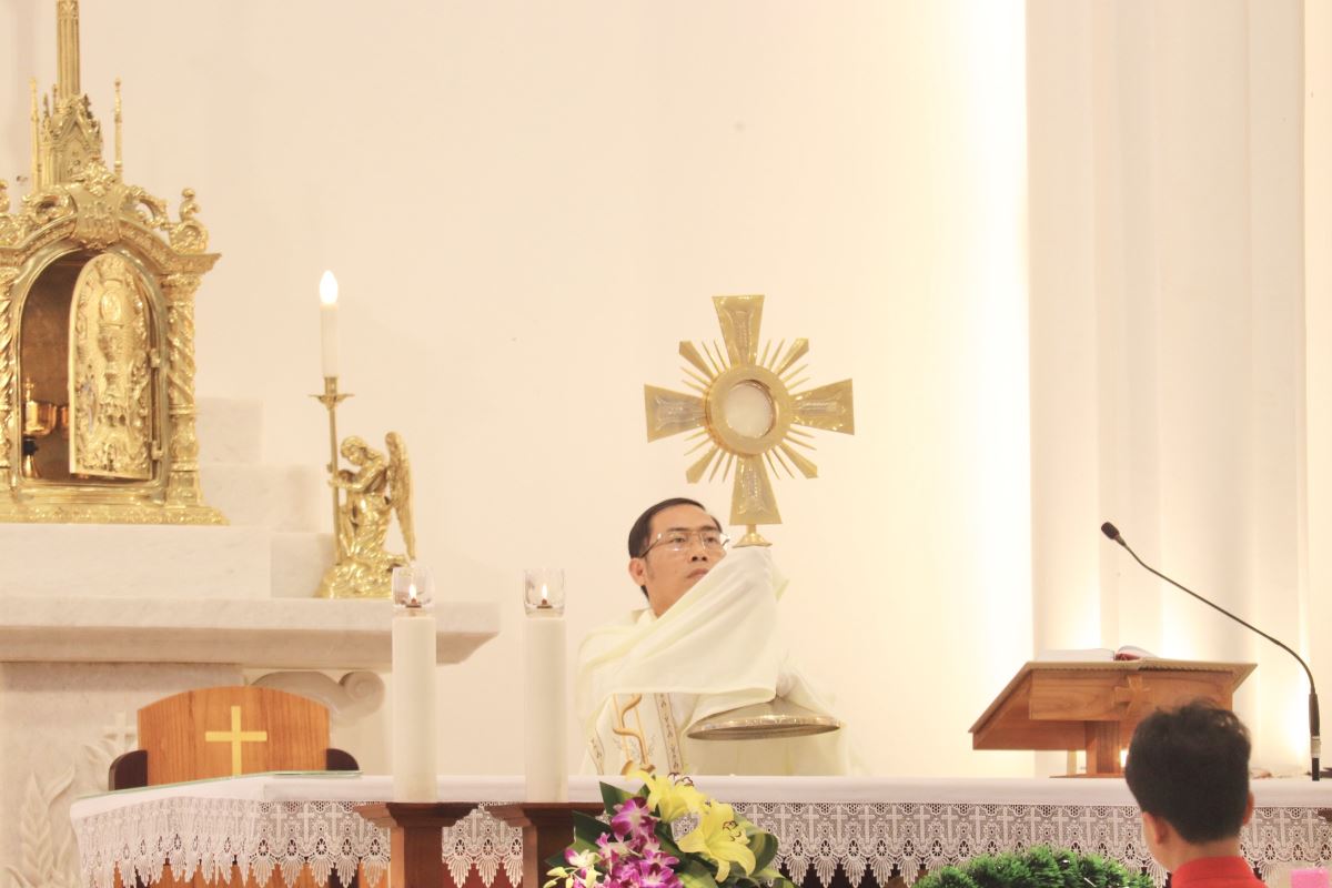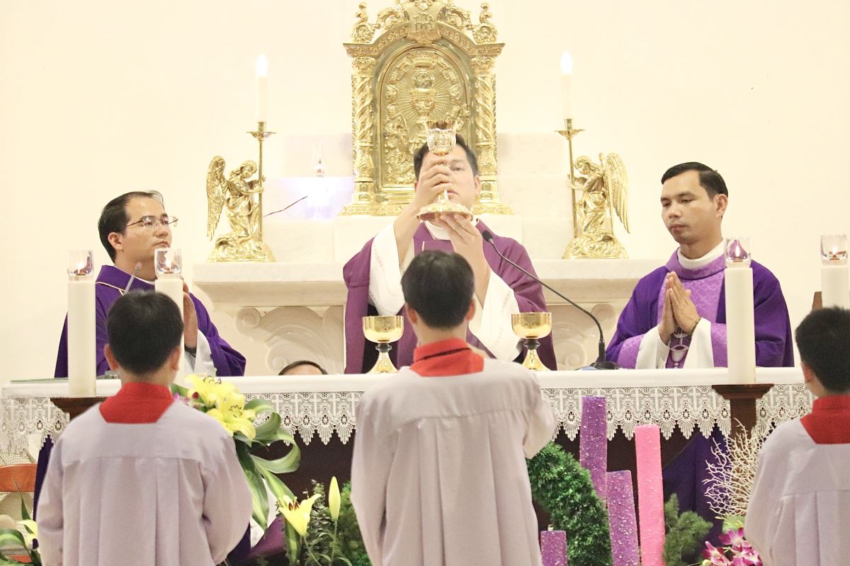 Cha Phanxicô Xaviê Lê Văn Tiến chủ tế, cùng đồng tế với quý cha trong giáo hạt.