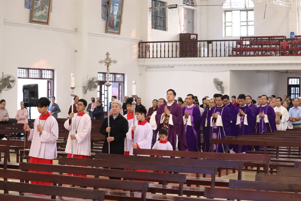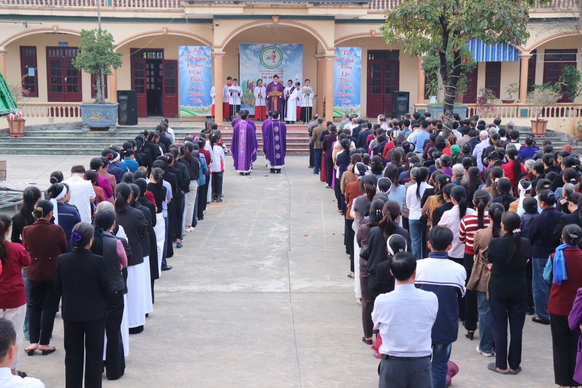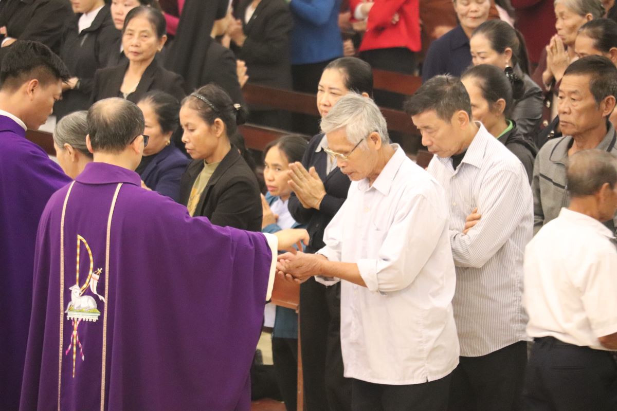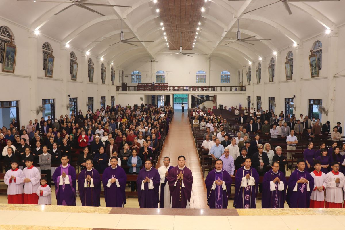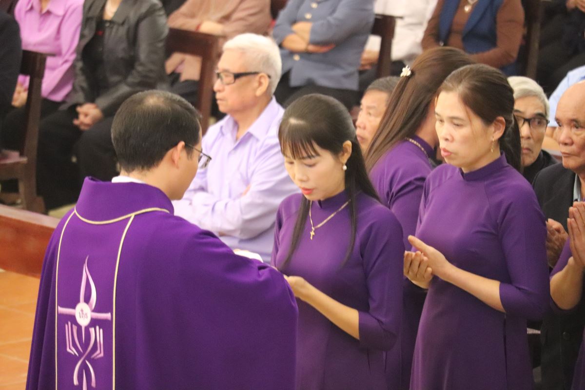 Tham dự Thánh lễ còn có thầy xứ Gioan Hồ Văn Chục, quý dì cộng đoàn Mến Thánh Giá Hoàng Xá, cùng đông đảo anh chị em tín hữu trong toàn giáo hạt.