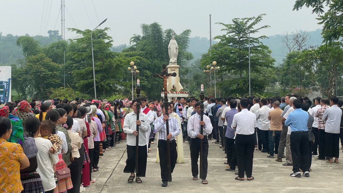 WGPHH - Sáng thứ Tư, ngày 14 tháng 5 năm 2025, tại giáo xứ Vĩnh Quang, giáo xứ Phình Hồ đã tổ chức ngày hành hương Năm Thánh, với sự hiện diện của Đức cha Đaminh Hoàng Minh Tiến - Giám mục Giáo phận, Cha Giuse Nguyễn Văn Thành - Quản hạt Nghĩa Lộ, quý Cha chính xứ của các giáo xứ trong Giáo hạt cùng quý Cha, quý Thầy, quý Dì và đông đảo giáo dân đồng bào H’Mông thuộc giáo xứ Phình Hồ.