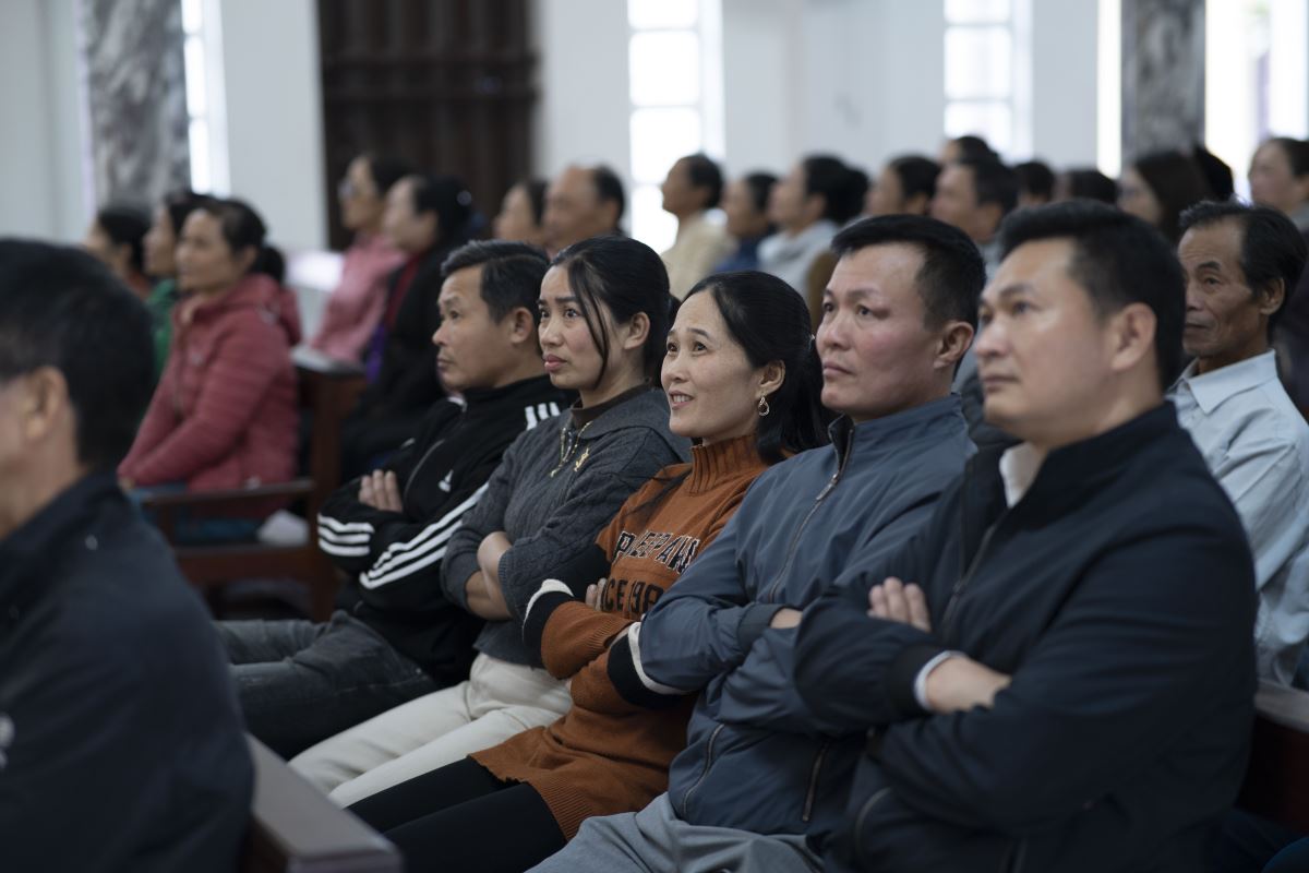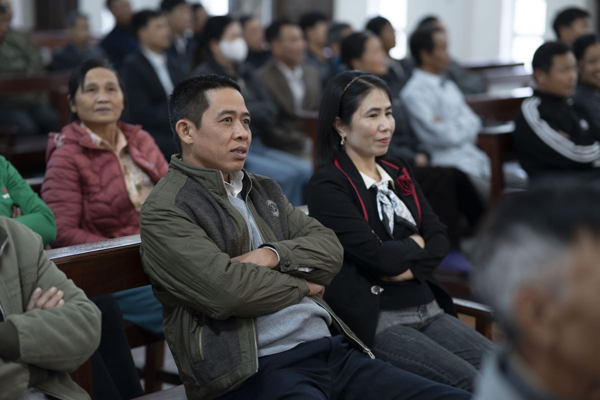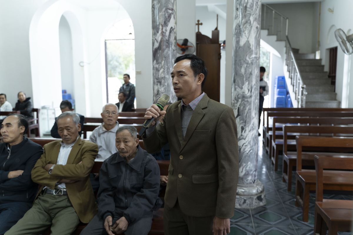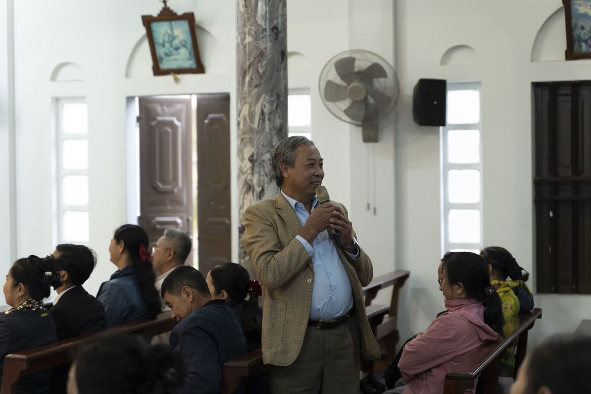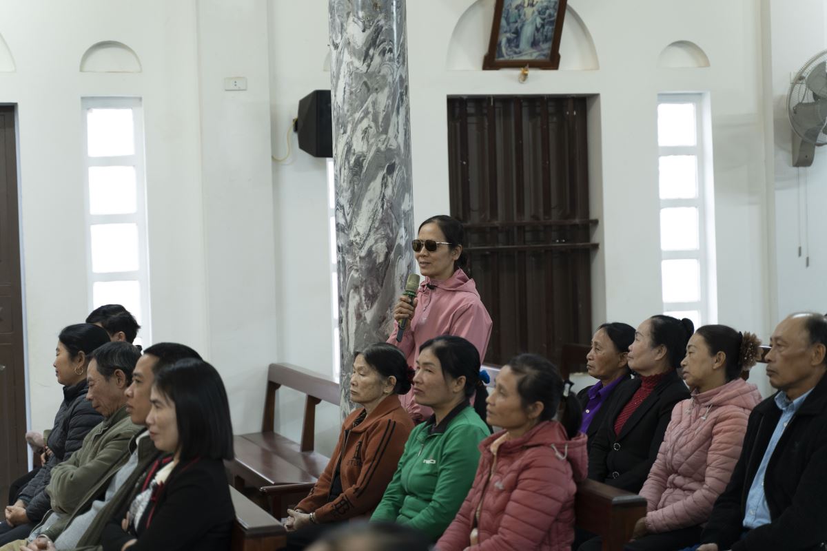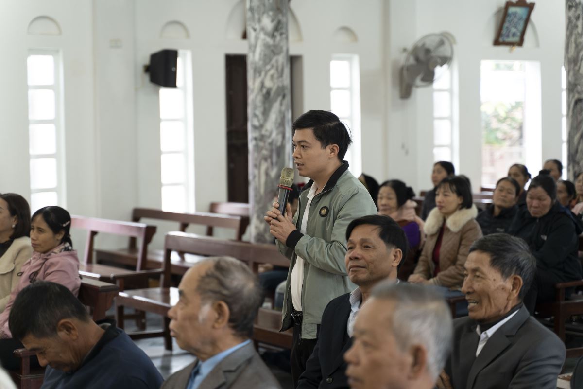 Sau phần chia sẻ, cộng đoàn cùng xem video gợi suy và bước vào phần thảo luận. Nhiều gia đình đã chân thành chia sẻ cách đức tin đang được sống trong gia đình mình qua những việc nhỏ bé nhưng đầy ý nghĩa: cùng đọc kinh sáng – tối, cùng chia sẻ Lời Chúa, cùng cầu nguyện trong những niềm vui và thử thách của cuộc sống. Những thao thức, băn khoăn của các gia đình đã được Cha xứ và Thầy xứ lắng nghe, giải đáp và đồng hành trong tinh thần mục vụ đầy cảm thông và gần gũi.