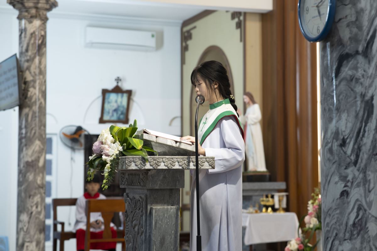 Vào lúc 16g45, Thánh lễ kính Thánh Gia Thất được cử hành trong bầu khí trang nghiêm, sốt sắng. Một điểm nhấn đặc biệt của Thánh lễ là cộng đoàn tham dự và ngồi theo từng cặp gia đình, diễn tả cách sống động hình ảnh gia đình hiệp thông bên bàn tiệc Thánh Thể.