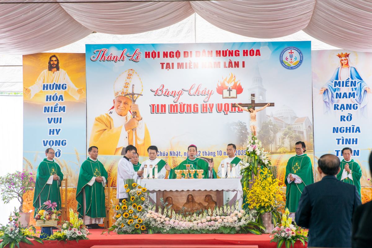 Sau phần khai mạc, Đức Cha Đaminh Hoàng Minh Tiến bày tỏ sự ghi nhận về lòng can đảm, ý chí và nghị lực, dám ra đi để tìm kiếm tương lai tốt đẹp hơn. Ngài nhấn mạnh rằng mục đích của ngày Hội Ngộ Di Dân trước hết là thể hiện trách nhiệm mục vụ của Giáo phận Hưng Hóa đối với anh chị em xa quê; sau là quy tụ, kết nối và đồng hành với họ trong tinh thần hiệp hành của Giáo Hội hoàn vũ, đặc biệt theo định hướng của Liên Hội Đồng Giám mục tại Á Châu.