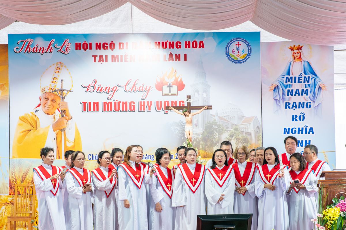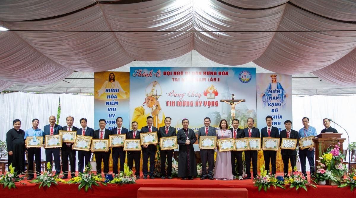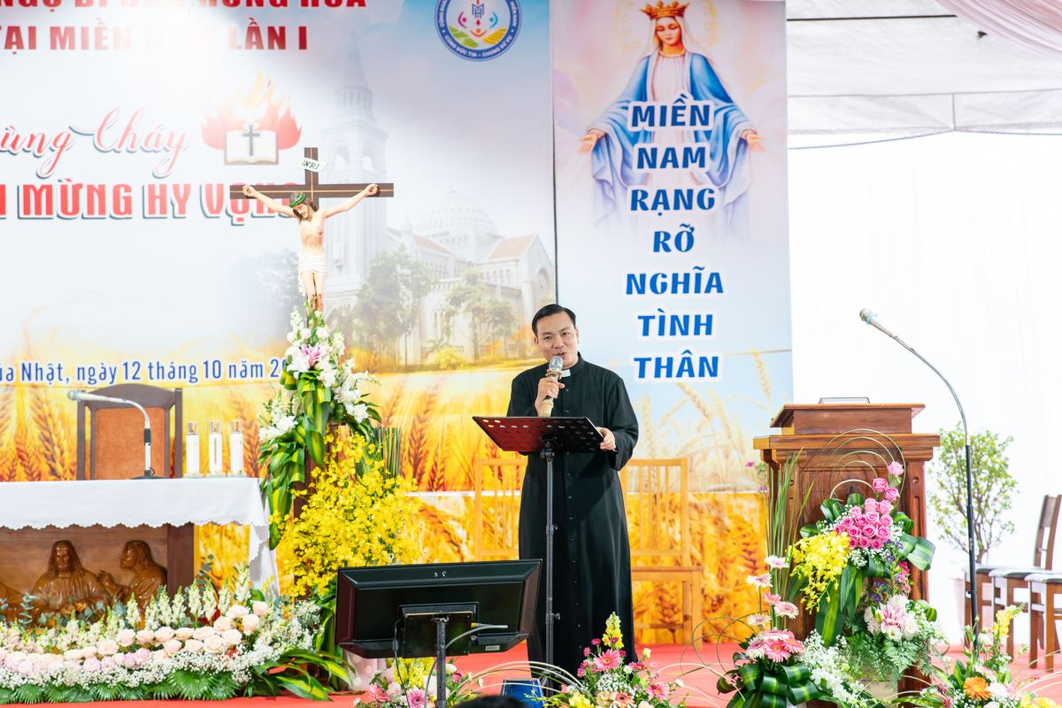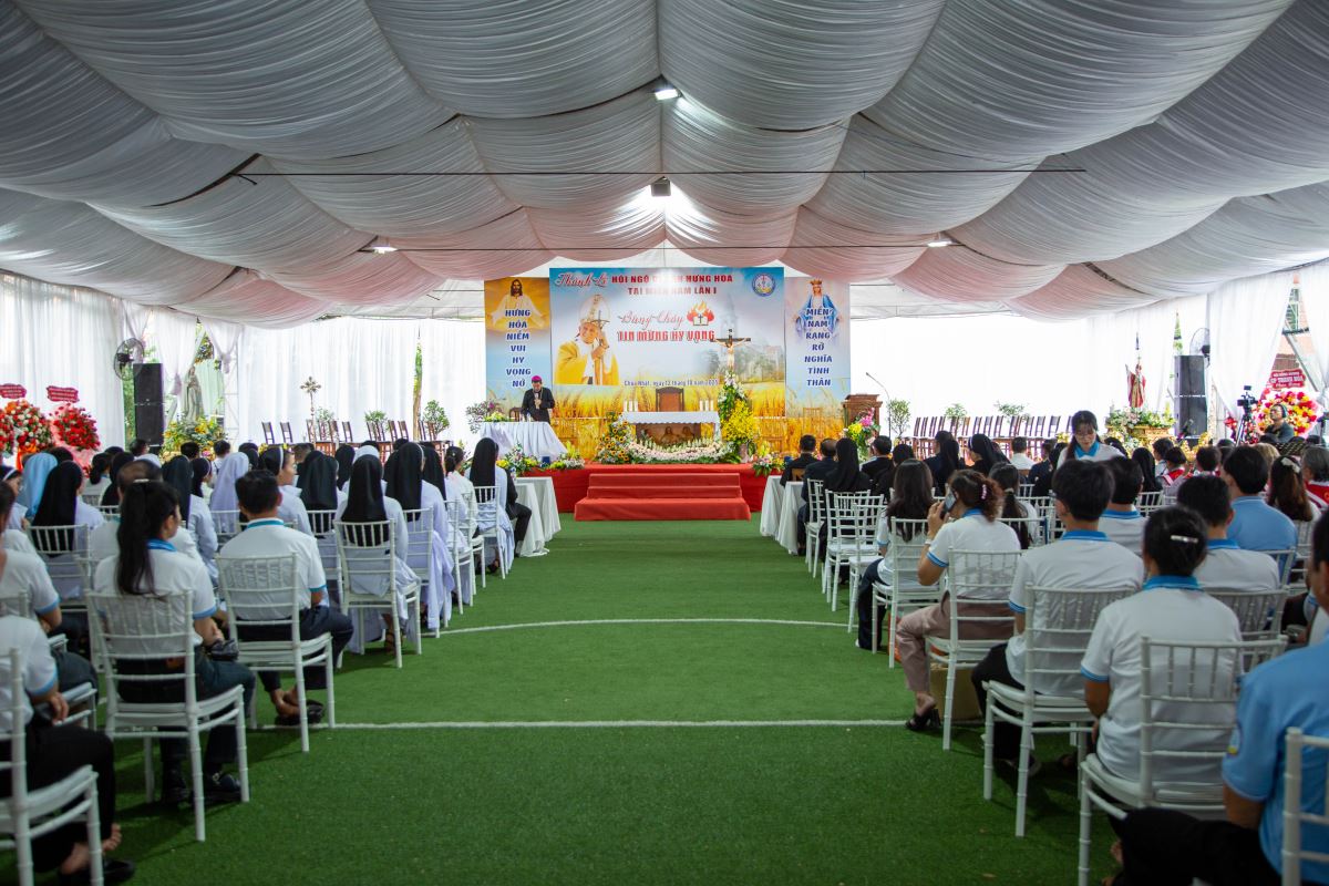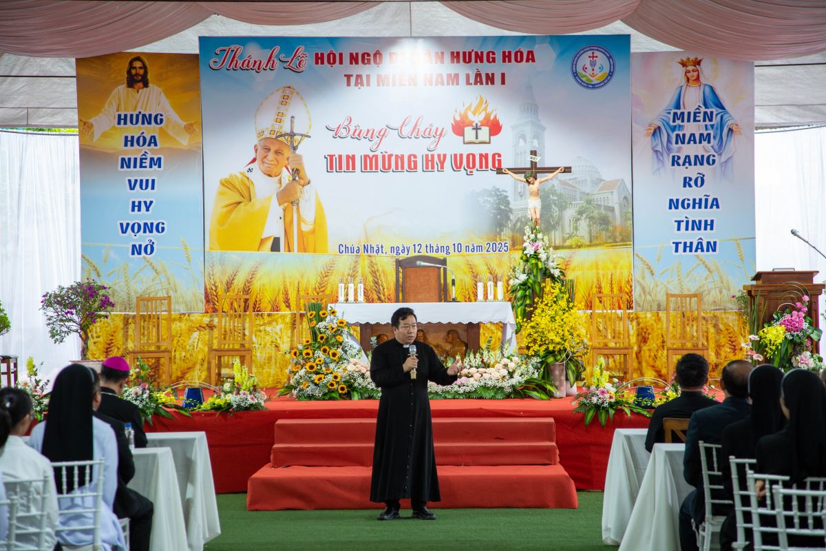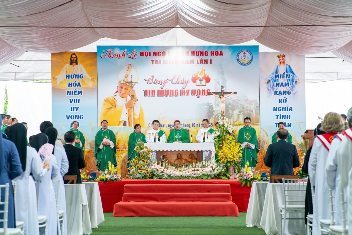 Sau đó, cha Giuse Đỗ Đình Tôn xin ơn Chúa thánh hóa và long trọng tuyên bố khai mạc ngày Hội Ngộ Di Dân Giáo Phận Hưng Hóa tại miền Nam lần thứ nhất, mở ra hành trình “hiệp hành” đầu tiên của cộng đoàn di dân Hưng Hóa tại miền Nam.