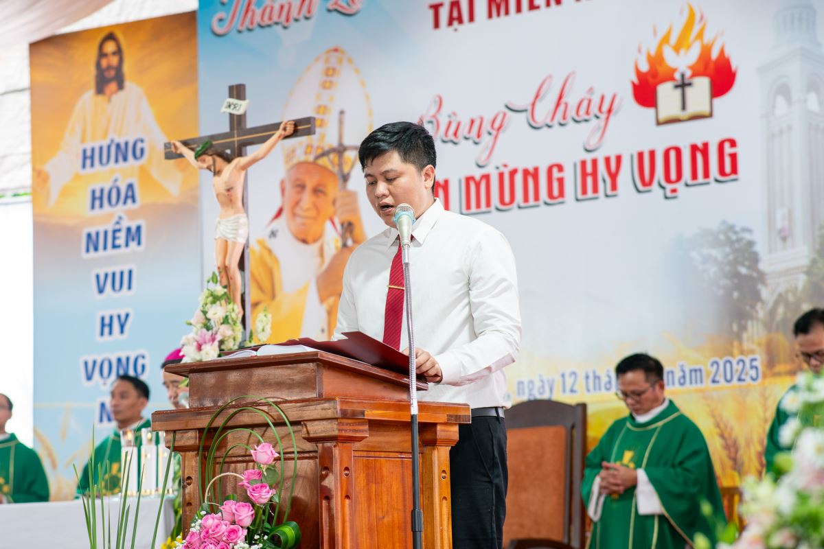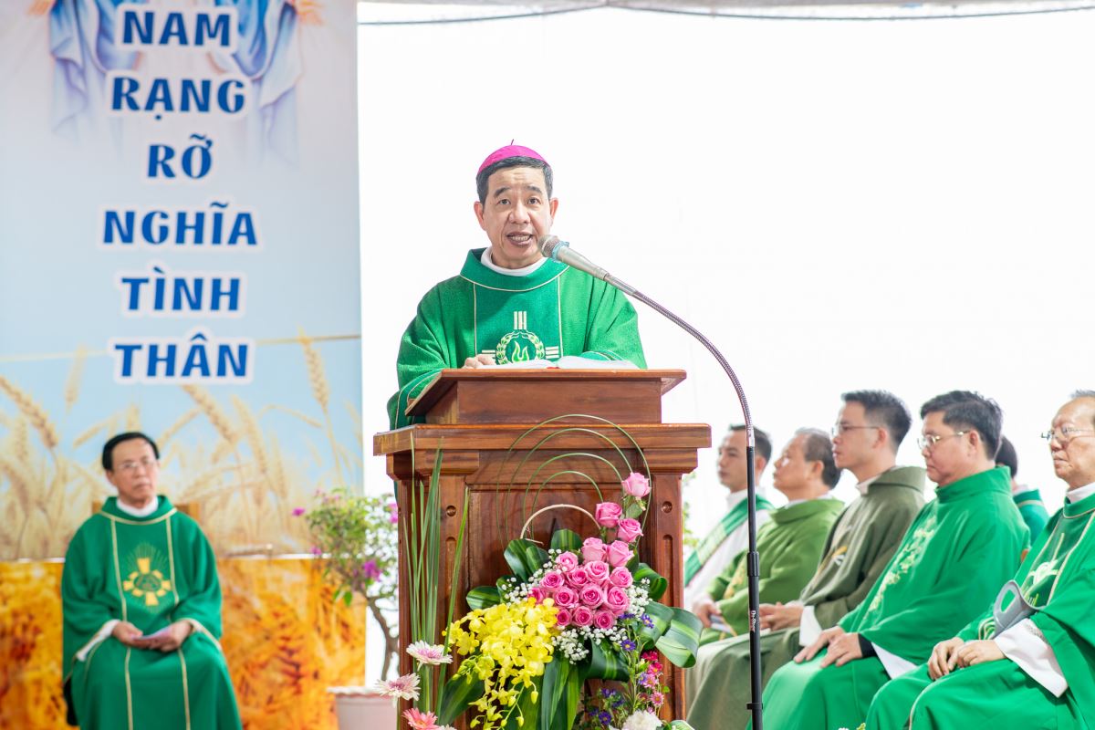 Cao điểm của ngày hội là Thánh lễ tạ ơn trang nghiêm và sốt sắng. Trong bài giảng, Đức cha Đaminh suy niệm về trình thuật 10 người phong (Lc 17,11–19), nhấn mạnh rằng: chỉ khi biết tạ ơn, con người mới thực sự được chữa lành. Giữa thế giới hôm nay đầy dẫy bệnh phong của vô cảm, ích kỷ và chia rẽ, Đức cha mời gọi mọi người hãy xin Chúa chữa lành tâm hồn và thắp lên nơi mình ngọn lửa yêu thương, hy vọng và hiệp nhất.