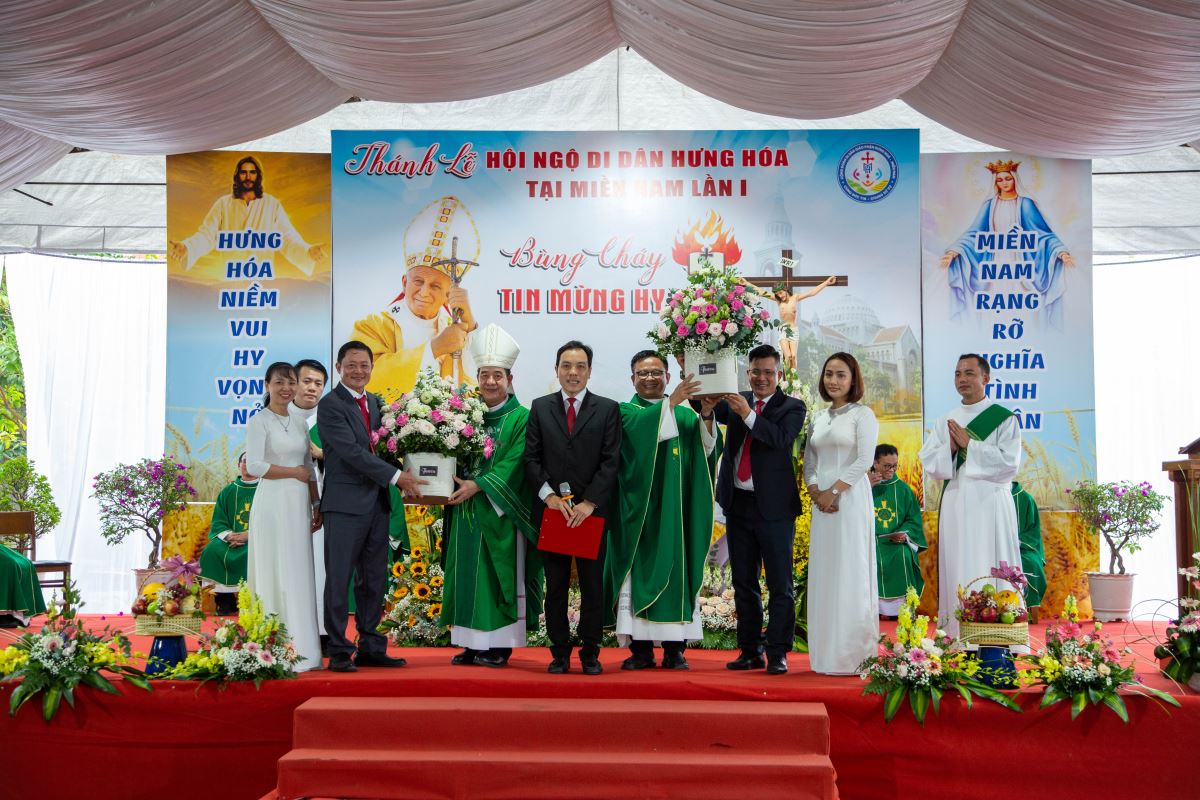 Kết thúc Thánh lễ, anh Giuse Nguyễn Đình Nhu – Trưởng Ban Điều Hành Di Dân Hưng Hóa miền Nam – thay mặt cộng đoàn bày tỏ lòng biết ơn Đức cha, quý cha và quý khách.