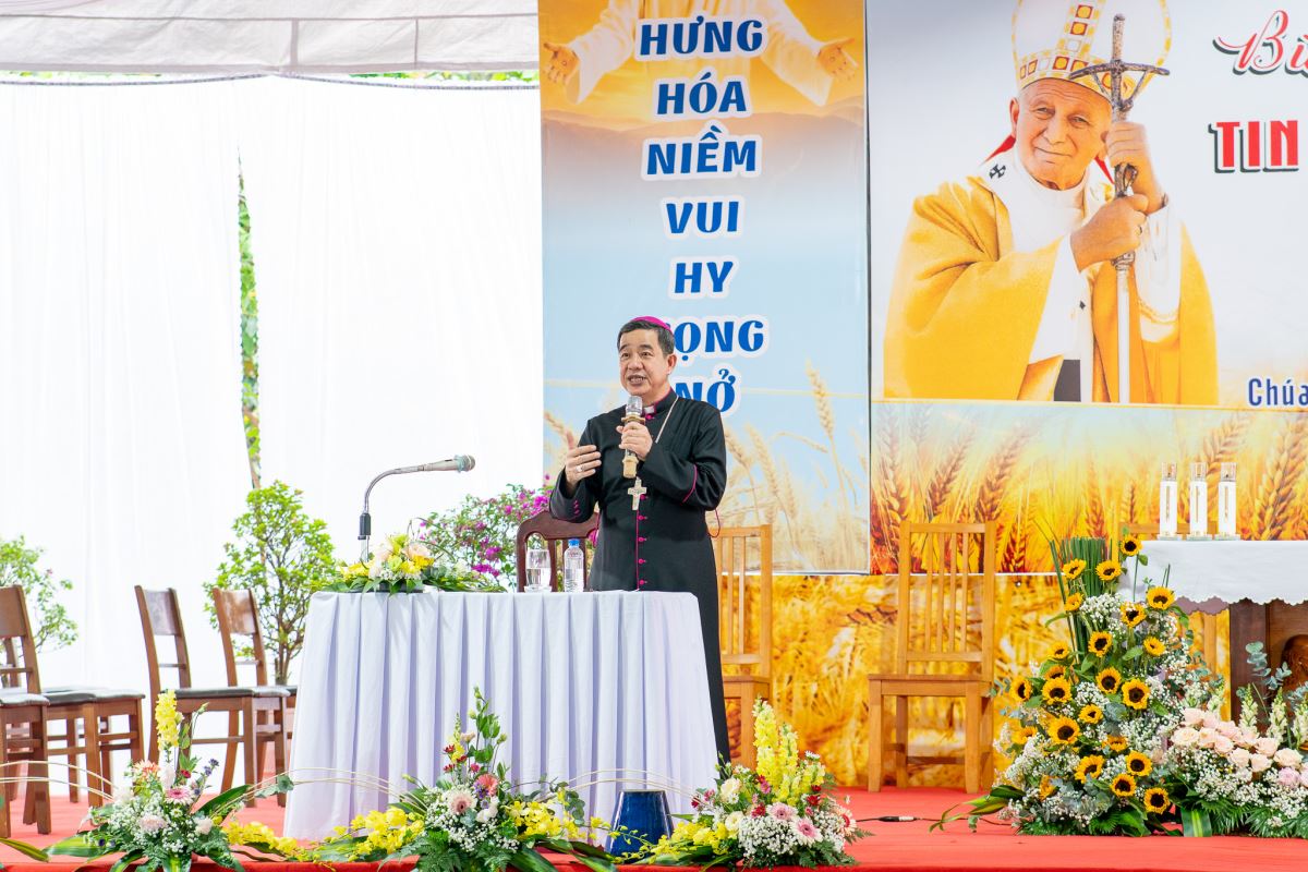 Trong bài huấn dụ, Đức Cha mời gọi các gia đình di dân: - Quan tâm giáo dục đức tin cho con cái ngay từ nhỏ;