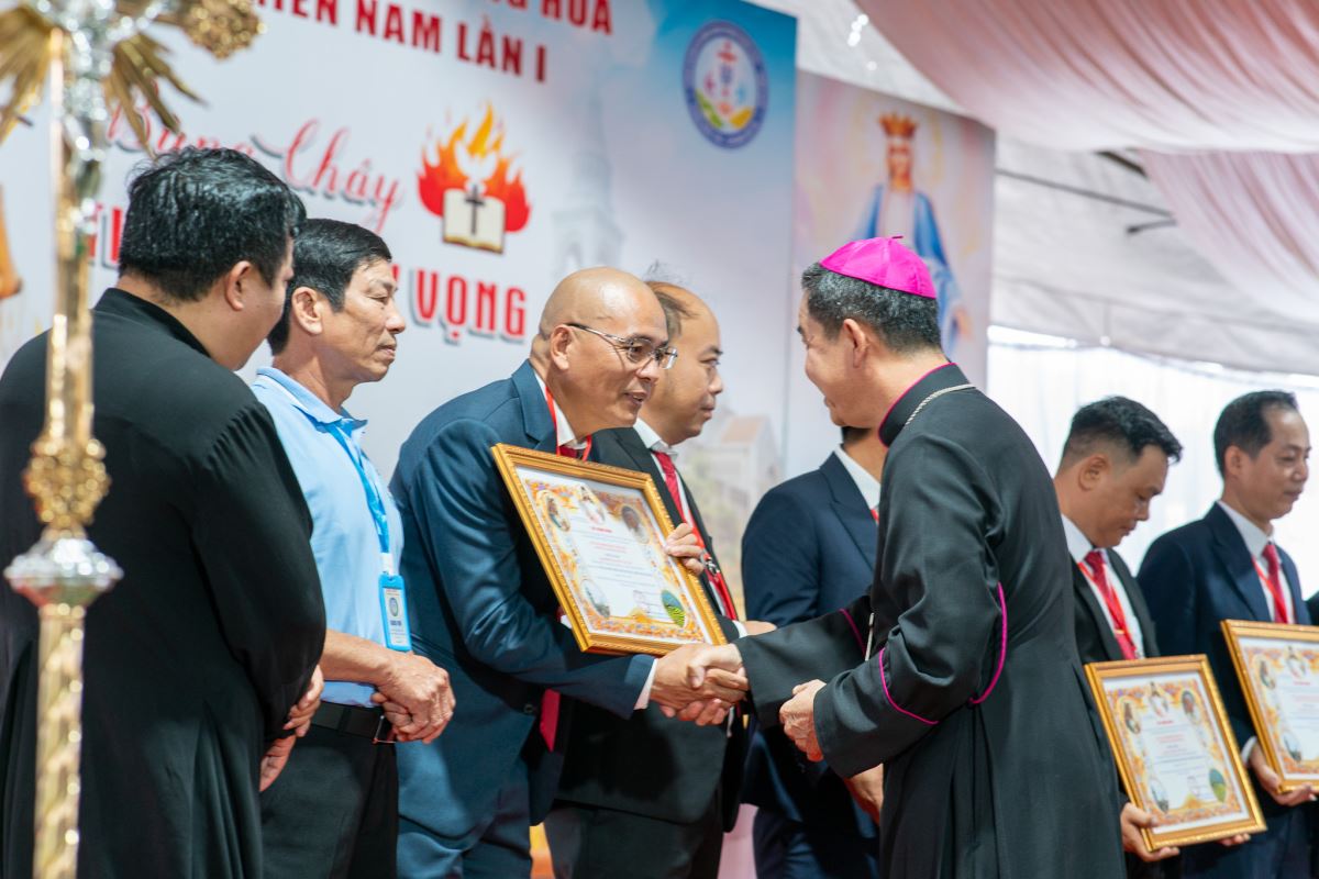 Tiếp theo đó, Đức Cha và Cha Chủ tịch di dân đã trao Thư Chứng Nhận cho Ban điều hành giáo phận và các giáo xứ, như dấu chỉ ghi nhận và khích lệ tinh thần cộng tác của anh chị em.
