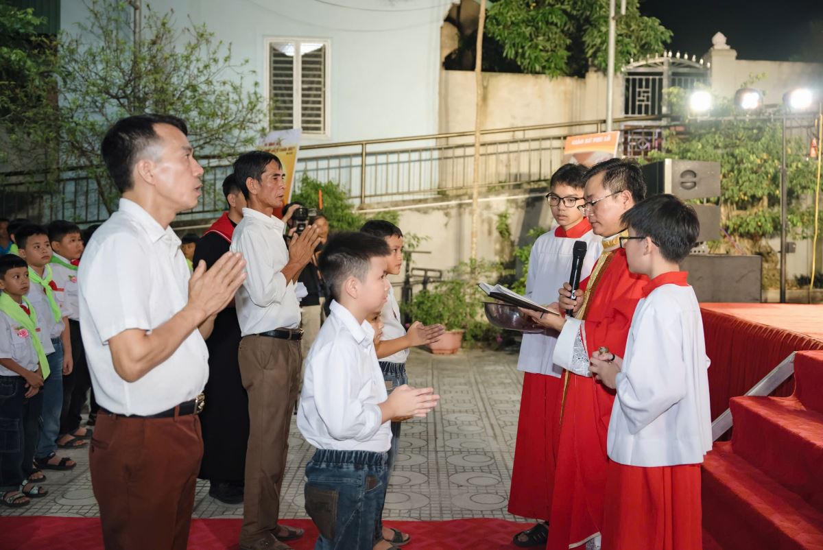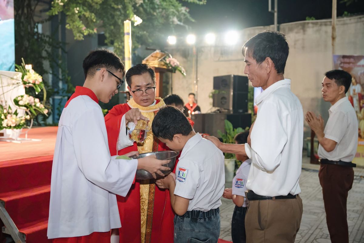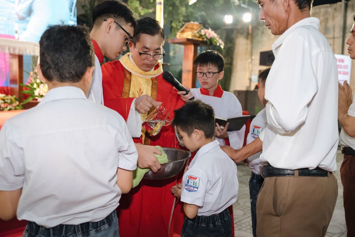 Thật ý nghĩa khi sự kiện trọng đại này lại diễn ra vào tối ngày 14/9/2025 – Lễ Suy Tôn Thánh Giá, biểu tượng tuyệt vời của tình yêu và ơn cứu độ. Trong thánh lễ, hai em được lãnh nhận Bí tích Thánh Tẩy như những mầm non mới trỗi dậy từ nguồn mạch Thánh Giá. Đây quả thực là hồng ân lớn lao, không chỉ cho các em và gia đình, mà còn là niềm vui và vinh dự của toàn thể cộng đoàn Giáo xứ Phù Lỗ.