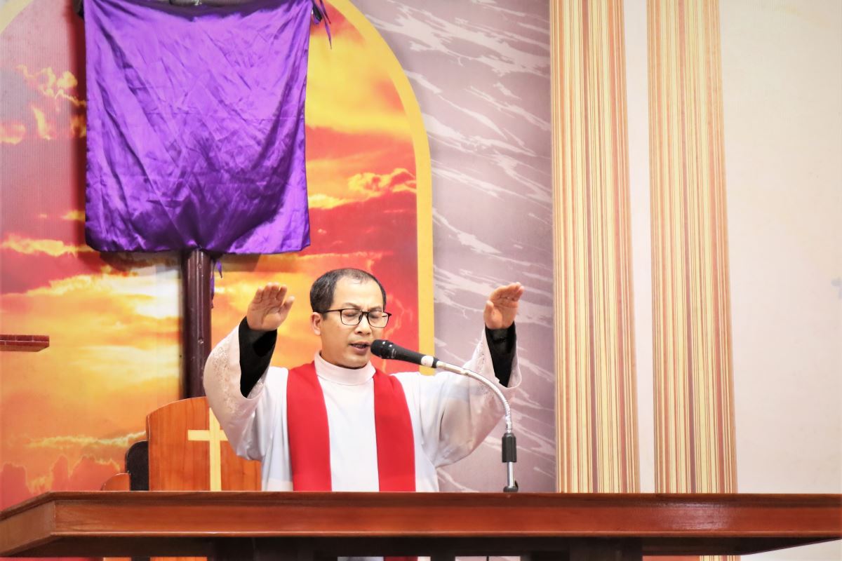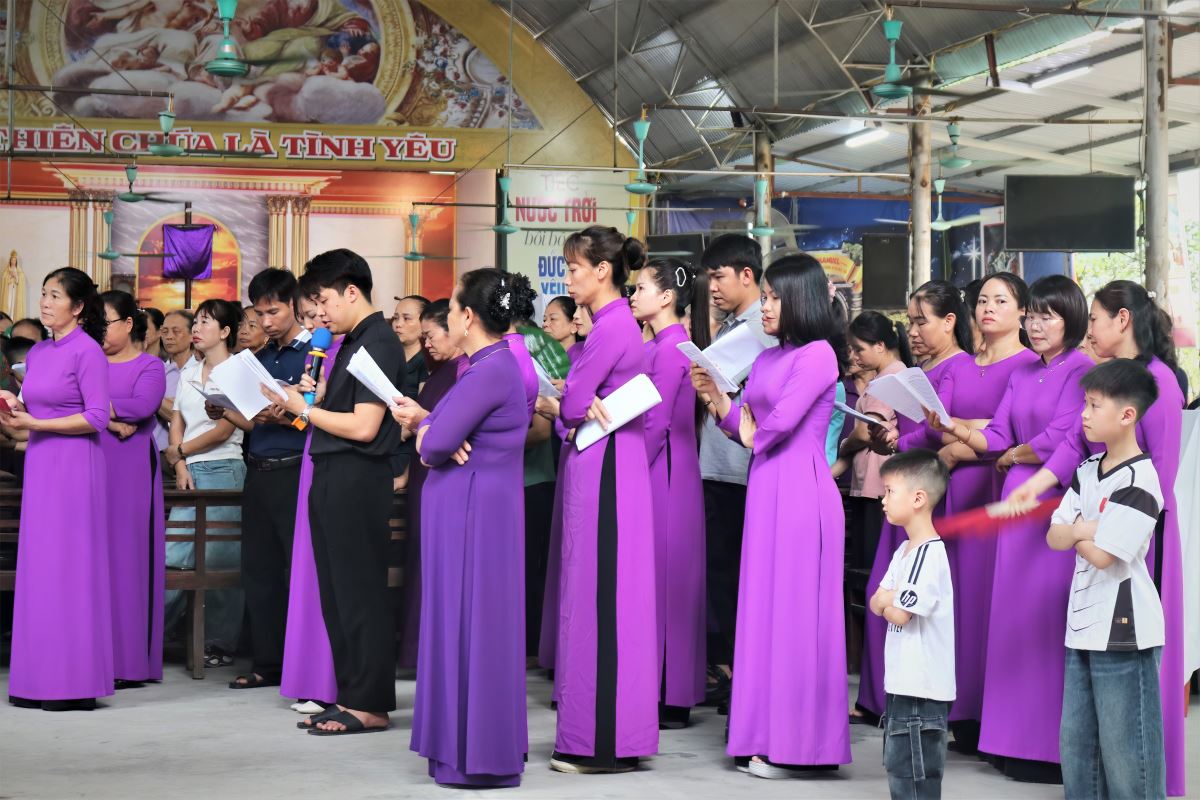 Trong phần chia sẻ Lời Chúa, cha phó đặc trách Vinh Sơn Vũ Văn Nguyện đã giúp cộng đoàn hiểu sâu sắc hơn về ý nghĩa và giá trị của Thánh Giá trong đời sống Kitô hữu. Ngài nhấn mạnh rằng Thánh Giá không chỉ là biểu tượng của đau khổ, nhưng trước hết là dấu chỉ của tình yêu cứu độ. Chính nơi Thánh Giá, Chúa Giêsu đã hiến dâng mạng sống mình để đem lại ơn tha thứ và sự sống mới cho nhân loại.