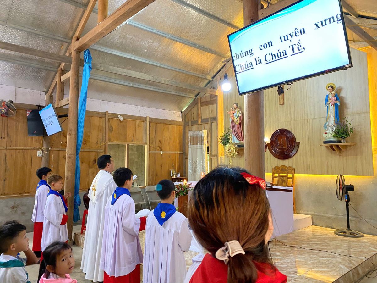 Trong tâm tình tạ ơn Thiên Chúa và chuẩn bị tâm tình hướng về ngày hồng phúc này, Giáo Họ đã tổ chức Chầu tam nhật với sự hiện diện của đông đảo tín hữu, cùng sự đồng hành của quý dì Hội dòng Mến Thánh Giá Hưng Hóa đang trong sứ vụ Tác viên Tin Mừng tại đây.