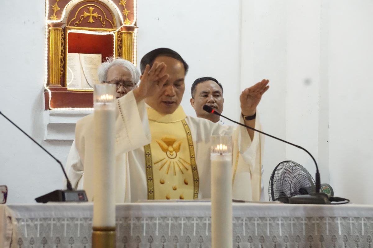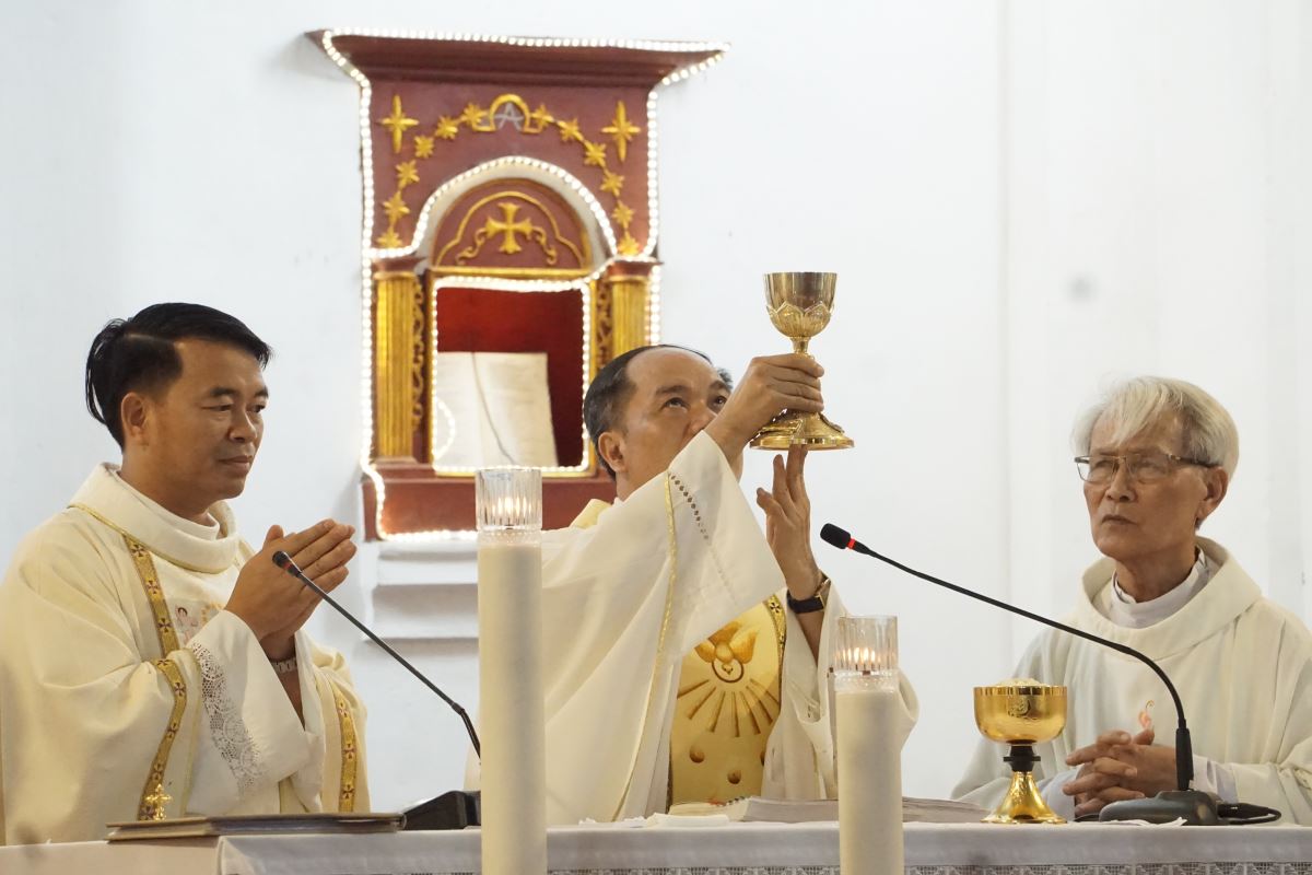 Cha Giuse Đỗ Văn Khuê giảng lễ Thánh lễ khép lại, cộng đoàn đón nhận phép lành trọng thể từ cha chủ tế.