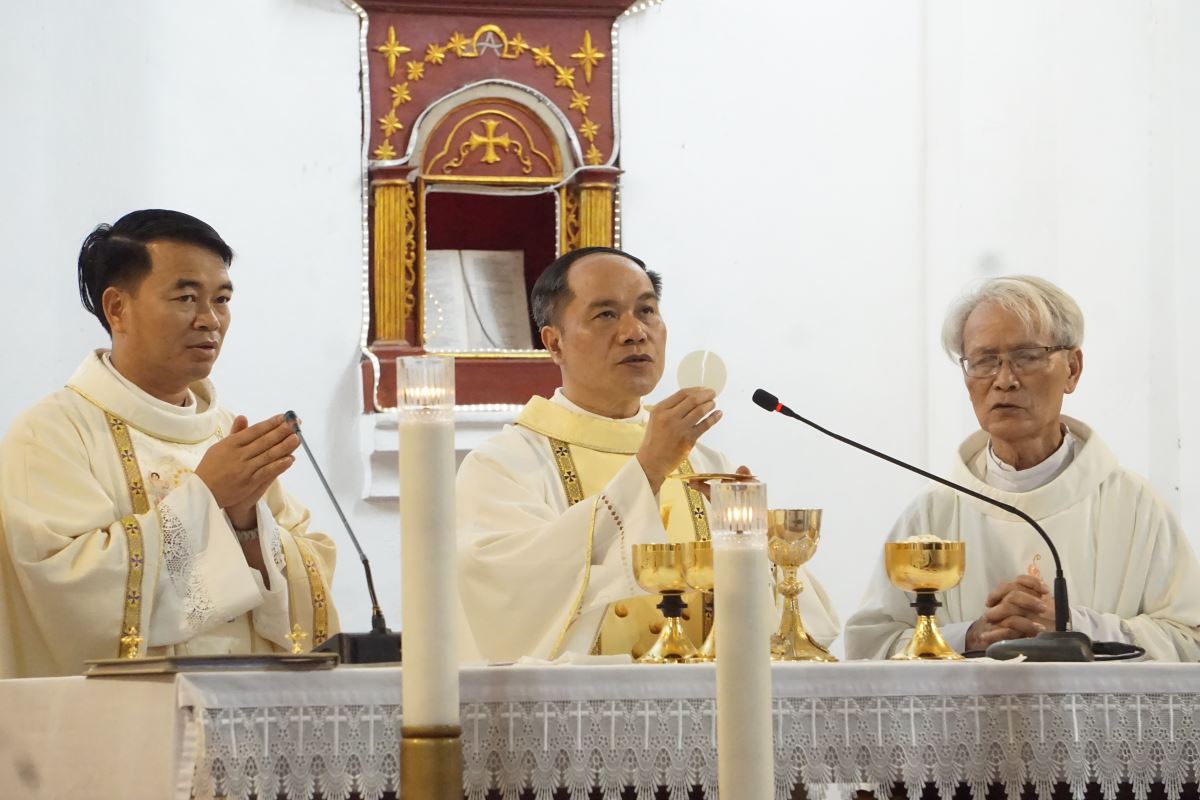 Cao điểm ngày hành hương là Thánh lễ do cha Giuse Nguyễn Gia Huấn chủ tế. Cùng đồng tế với ngài có quý cha trong phiên trực.