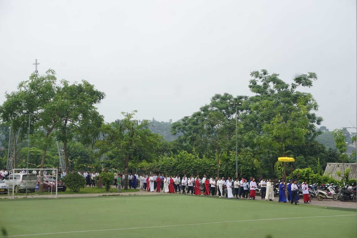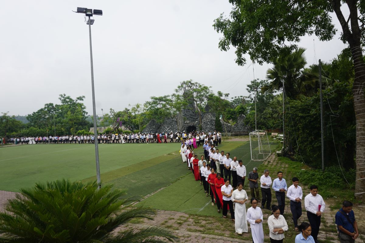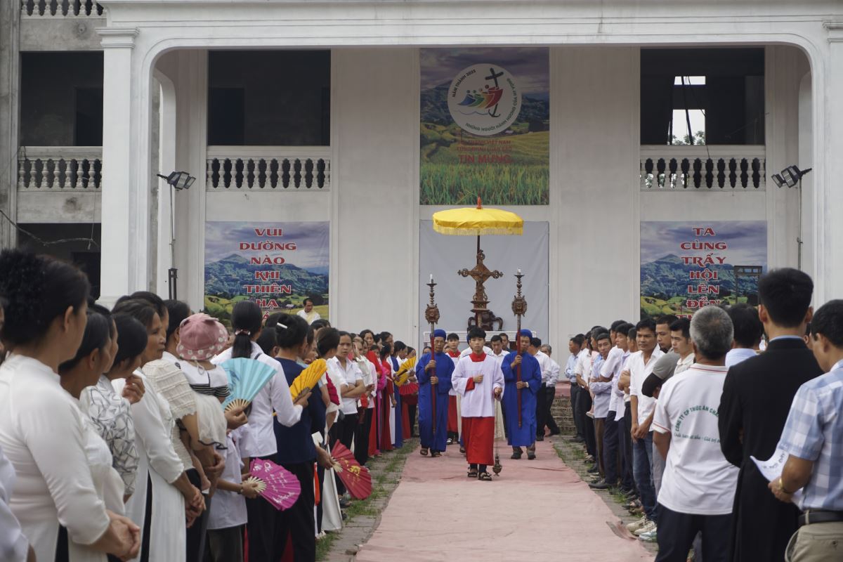 Chương trình bắt đầu lúc 07g30 với nghi thức khởi sự trang nghiêm tại sảnh nhà giáo lý, do cha Giuse Hoàng Trọng Tuấn - cha xứ giáo xứ Phượng Vỹ chủ sự. Sau đó, đoàn hành hương tiến vào thánh đường trong thinh lặng và trật tự, đoàn người xếp hàng dài bước theo sau Thánh Giá như tạo nên một dòng chảy đức tin đầy sốt sắng, như hình ảnh Dân Chúa lên đường tìm gặp Thiên Chúa của mình.