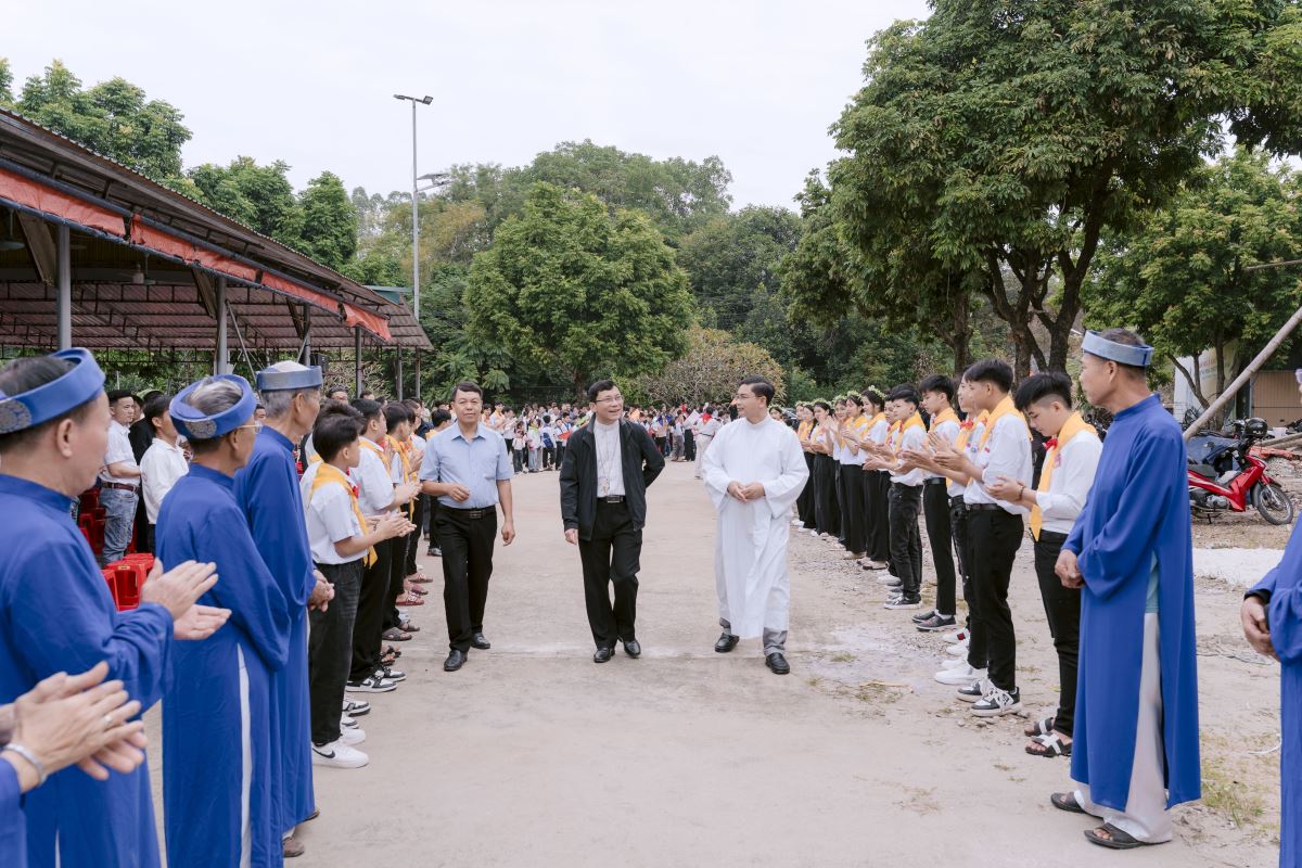 WGPHH - Sáng Chúa nhật, ngày 26 tháng 10 năm 2025, cộng đoàn Chuẩn Giáo xứ Nội Quang hân hoan chào đón Đức Cha Phụ tá Phaolô Nguyễn Quang Đĩnh về chủ sự Thánh lễ và ban Bí tích Thêm Sức cho 55 em thiếu nhi trong giáo xứ.