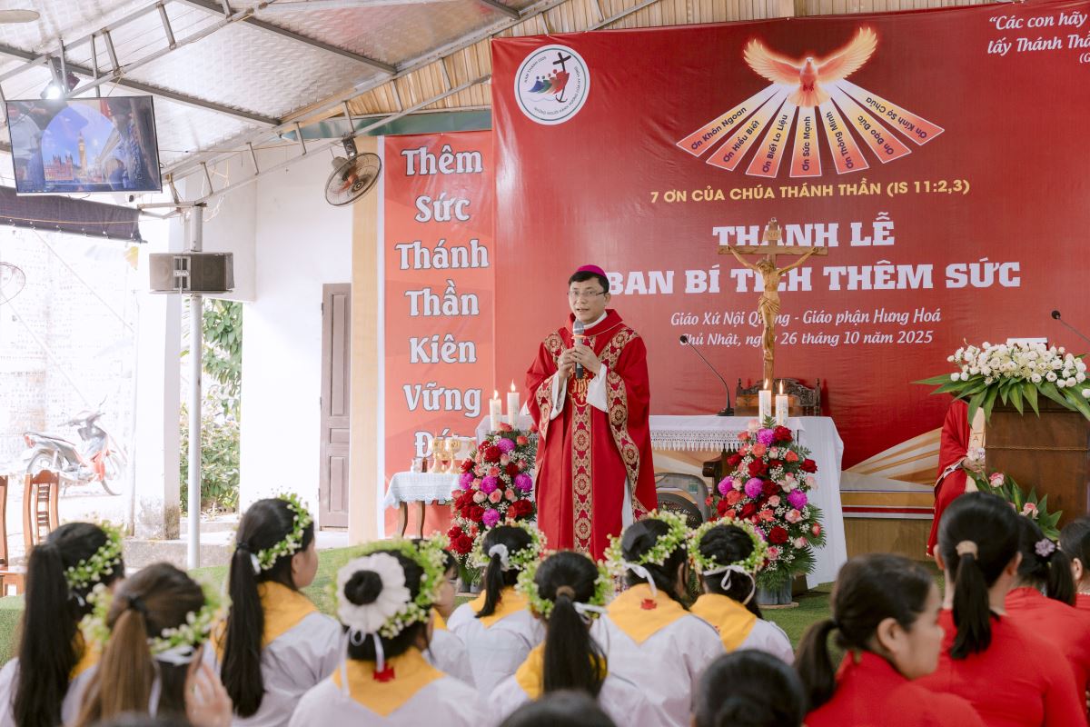 Đức cha khuyên nhủ các em hãy lắng nghe tiếng Chúa Thánh Thần trong lòng mình, sống ngoan ngoãn, chăm chỉ học giáo lý, siêng năng tham dự Thánh lễ và tích cực làm việc tốt. Đồng thời, ngài mời gọi các bậc phụ huynh và cộng đoàn luôn đồng hành, nâng đỡ và nêu gương sáng cho các em trong đời sống đức tin.
