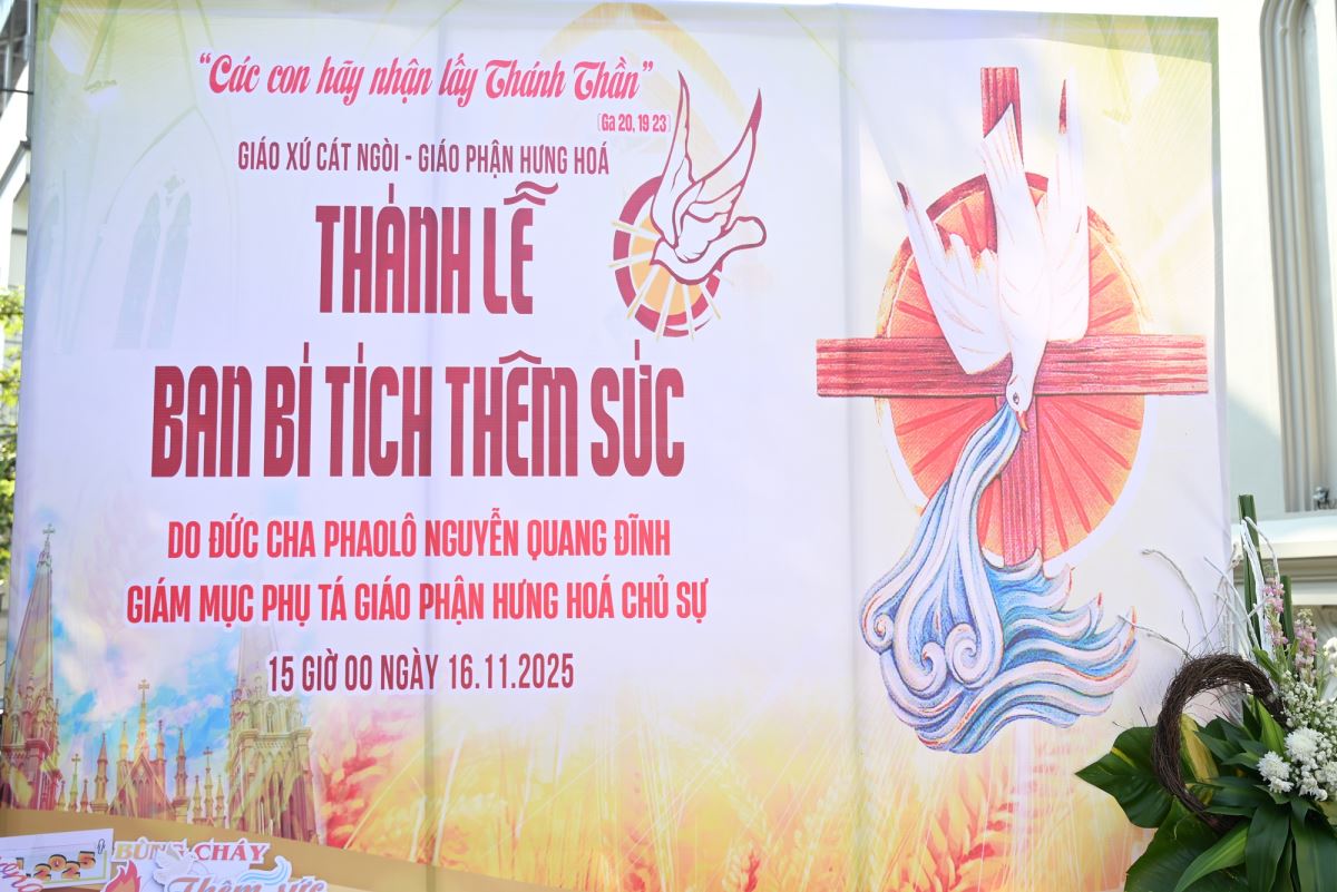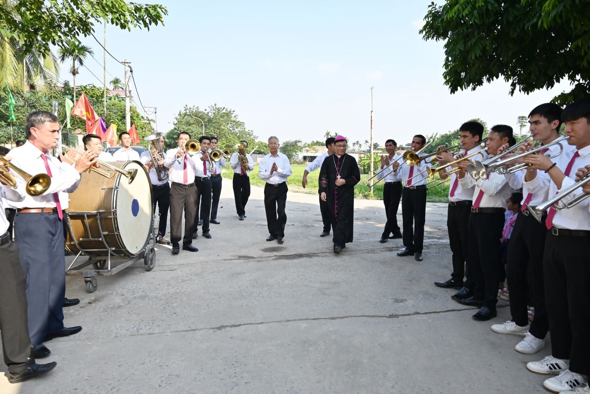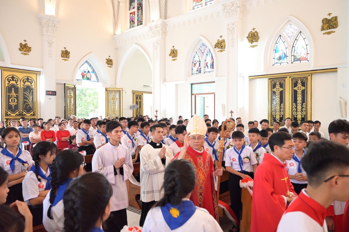 WGPHH - Chiều Chúa nhật, ngày 16.11.2025, cộng đoàn Giáo xứ Cát Ngòi hân hoan chào đón Đức cha Phaolô Nguyễn Quang Đĩnh – Giám mục phụ tá Giáo phận Hưng Hóa về thăm mục vụ và chủ sự Thánh lễ ban Bí tích Thêm Sức cho 73 em thiếu nhi trong Giáo xứ.