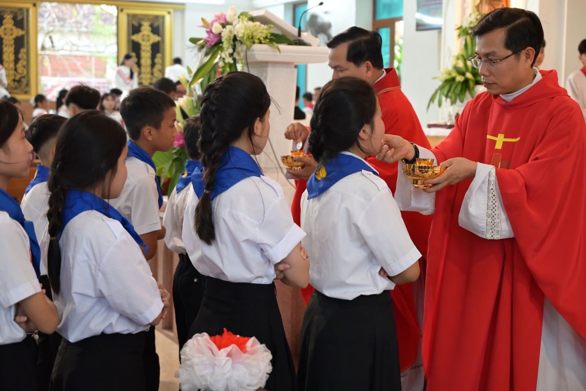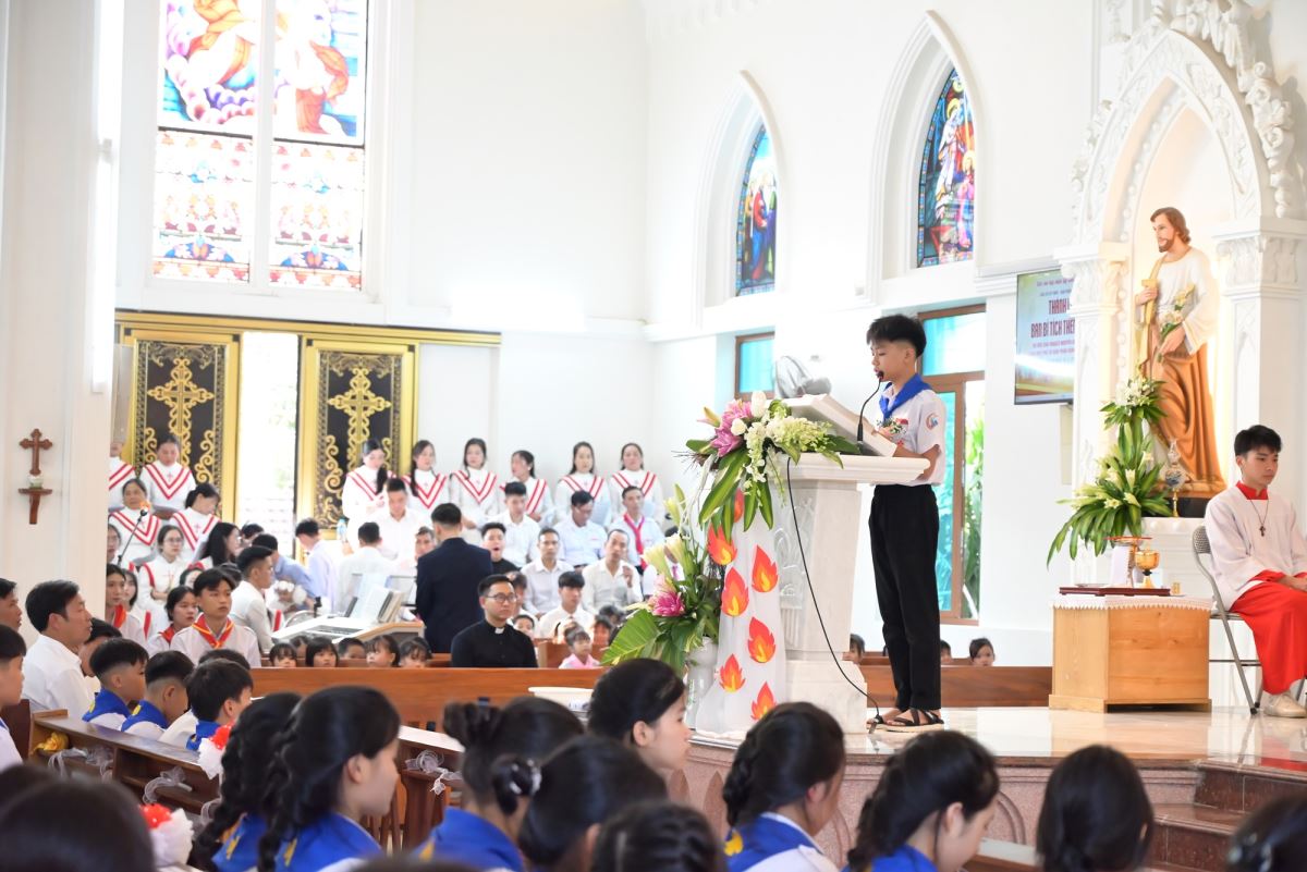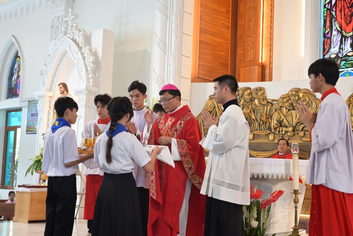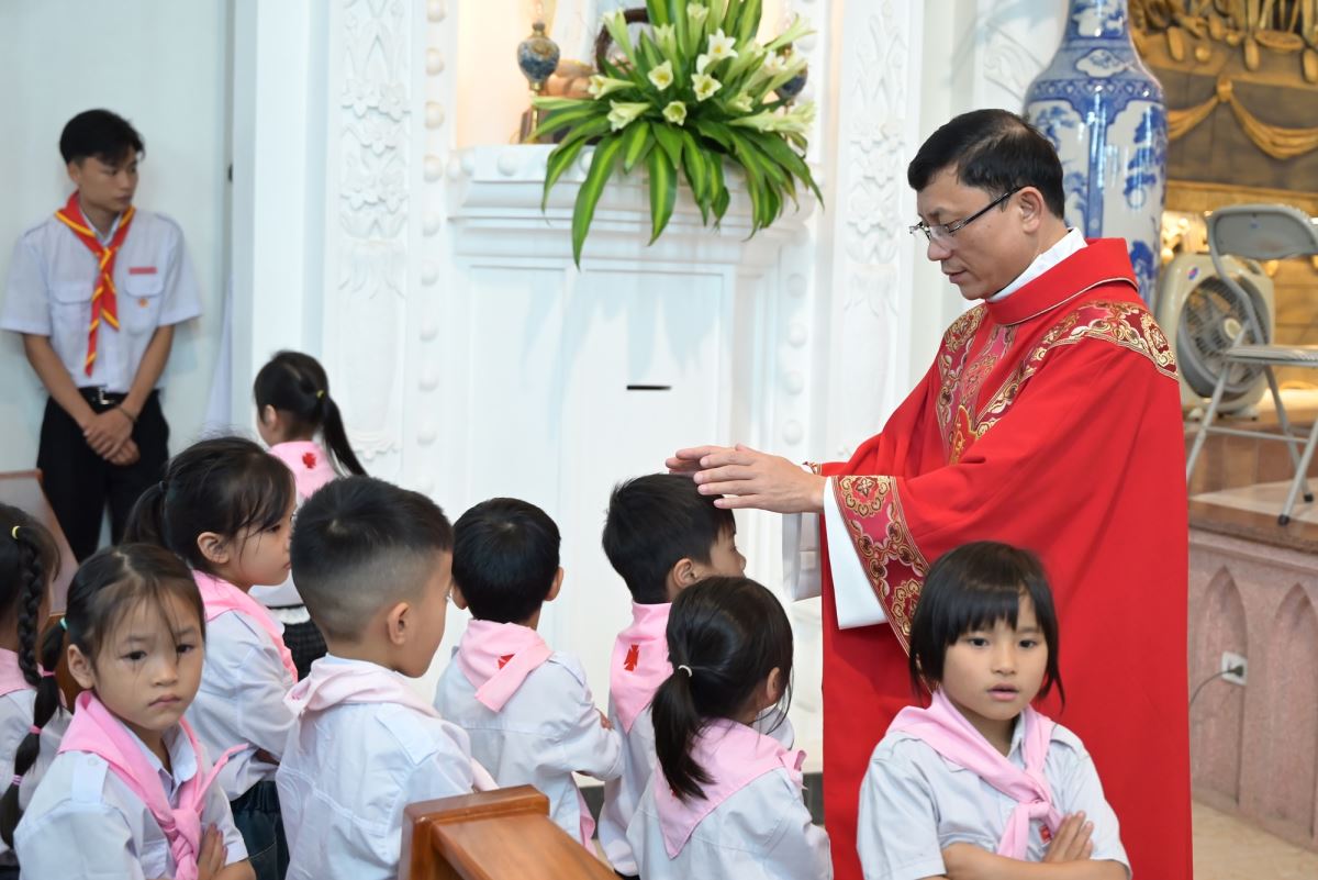 Đặc biệt, trong ngày lễ kính trọng thể các Thánh Tử Đạo Việt Nam, Đức cha Phaolô mời gọi các em noi gương các Thánh tử Đạo, biết hi sinh trong đời sống hằng ngày để làm chứng cho Chúa giữa môi trường sống, trong lớp học, giữa bạn bè. Đồng thời, Đức cha cũng nhắc nhở phụ huynh và cộng đoàn cùng đồng hành, nâng đỡ các em bằng đời sống gương mẫu và lời cầu nguyện.