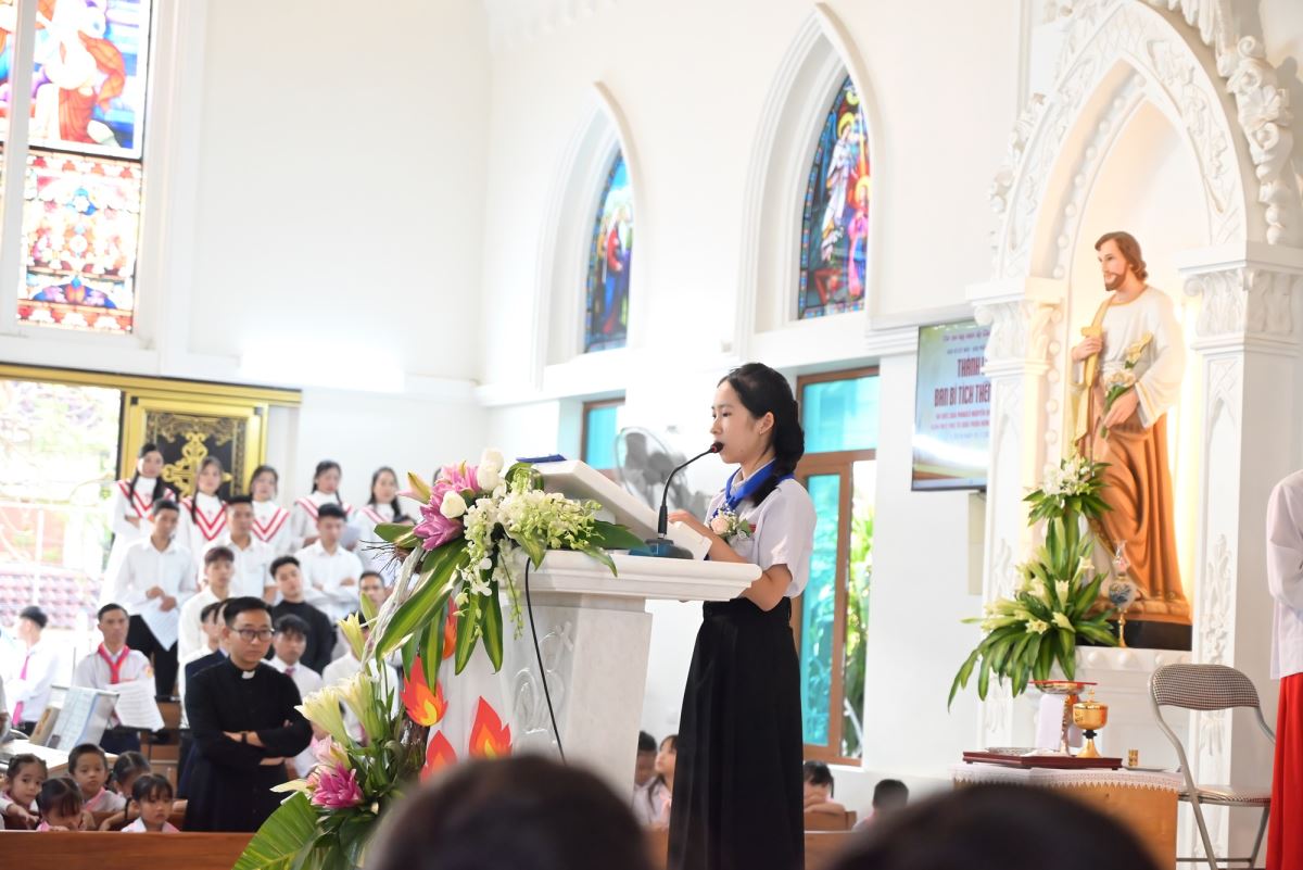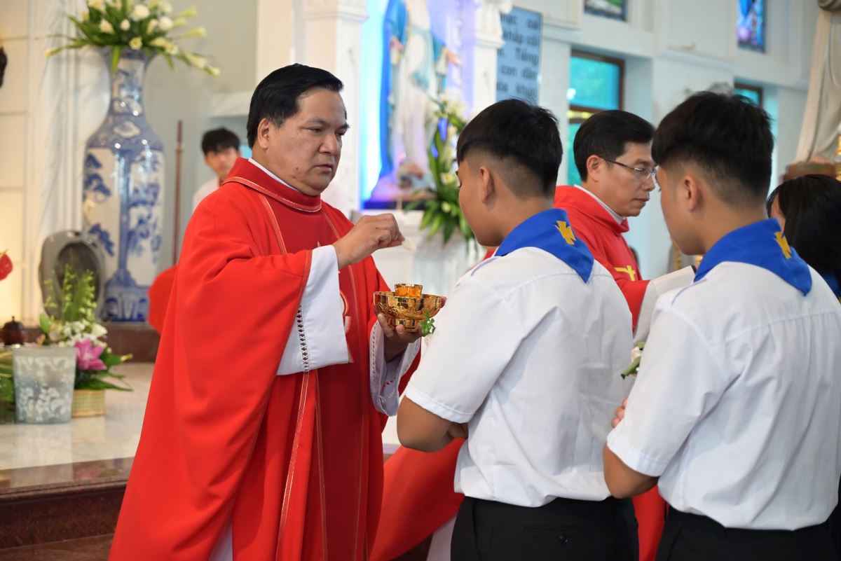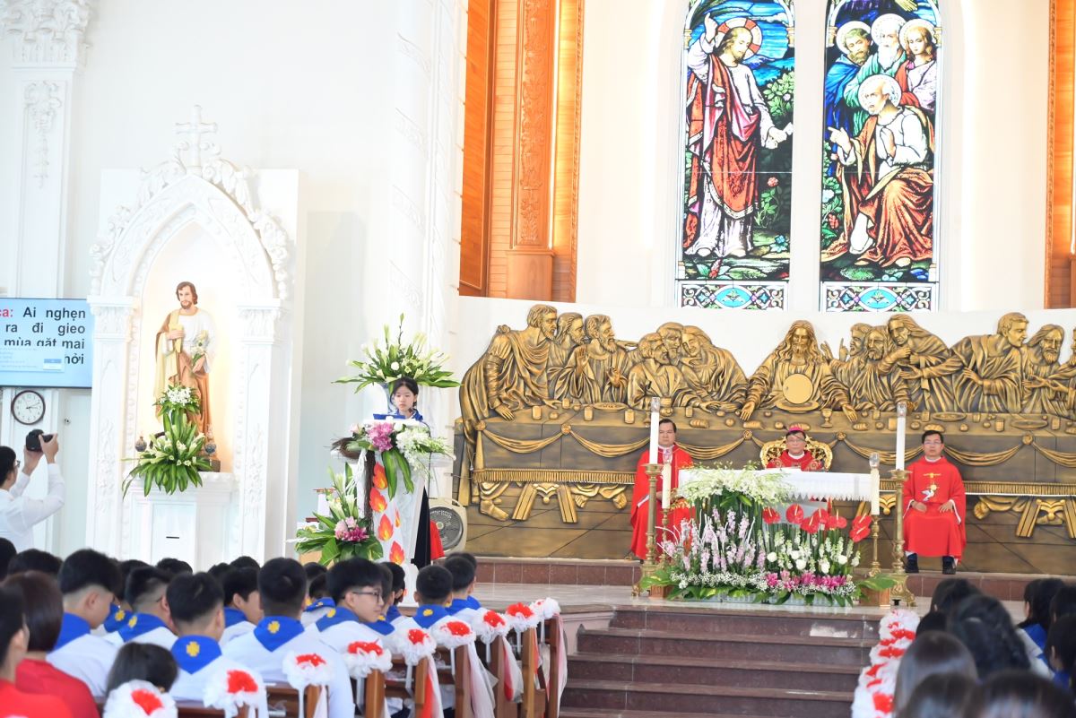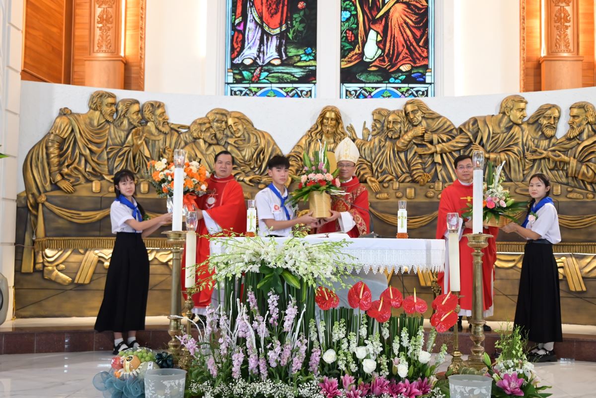Đặc biệt, trong ngày lễ kính trọng thể các Thánh Tử Đạo Việt Nam, Đức cha Phaolô mời gọi các em noi gương các Thánh tử Đạo, biết hi sinh trong đời sống hằng ngày để làm chứng cho Chúa giữa môi trường sống, trong lớp học, giữa bạn bè. Đồng thời, Đức cha cũng nhắc nhở phụ huynh và cộng đoàn cùng đồng hành, nâng đỡ các em bằng đời sống gương mẫu và lời cầu nguyện.