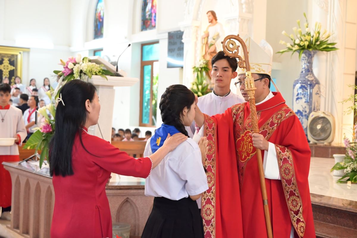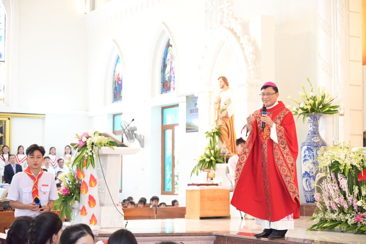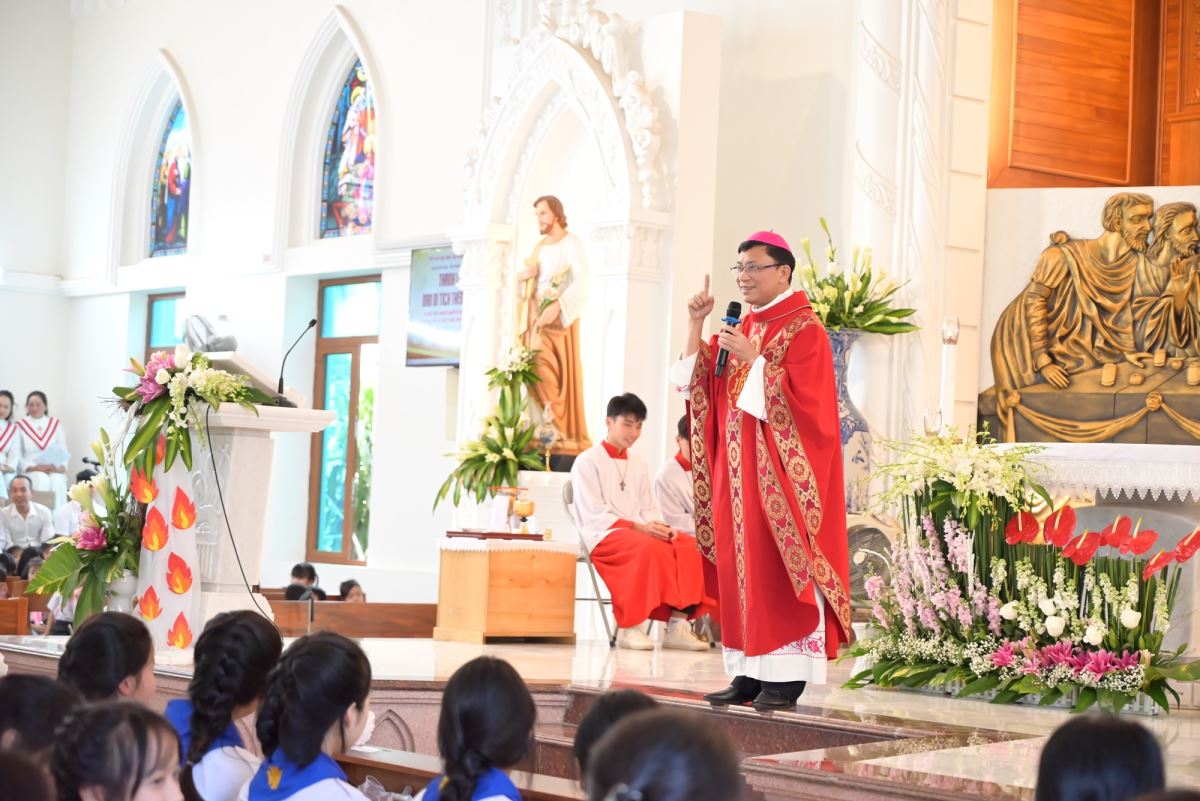 Qua đó, Đức cha nhấn mạnh ý nghĩa thiêng liêng của Bí tích Thêm Sức, mời gọi các em biết mở lòng để nghe tiếng Chúa Thánh Thần, sống đạo cách trưởng thành và tích cực, trở thành những chứng nhân sống động cho Tin Mừng trong đời sống hằng ngày.