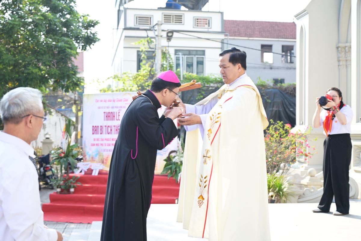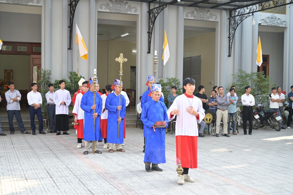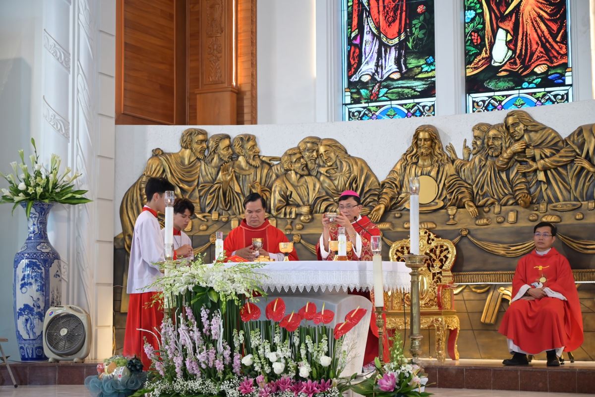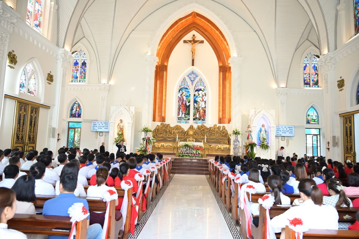 Thánh lễ được cử hành vào lúc 15h00 tại nhà thờ Giáo xứ Cát Ngòi. Thánh lễ do Đức cha Phaolô Nguyễn Quang Đĩnh – Giám mục phụ tá Giáo phận Hưng Hóa chủ tế. Đồng tế với ngài có cha xứ Đaminh Hoàng Thế Bằng, cha giáo Giuse Nguyễn Minh Hoàng, OP (Dòng Đaminh). Hiện diện trong Thánh lễ còn có quý thầy, quý dì, quý phụ huynh và đông đảo cộng đoàn dân Chúa.