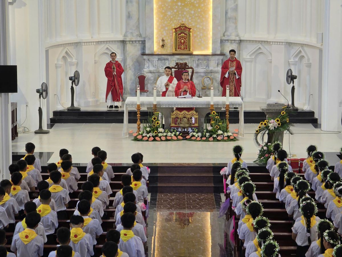 WGPHH - Sáng Chúa Nhật XXII Thường Niên, ngày 31 tháng 8 năm 2025, tại ngôi thánh đường giáo xứ Tạ Xá, cộng đoàn hân hoan mừng đón ngày trọng đại: Thánh lễ ban Bí tích Thêm Sức cho 199 em thiếu nhi của liên xứ Tạ Xá.