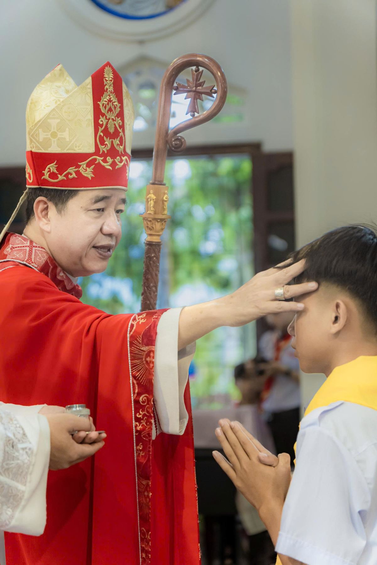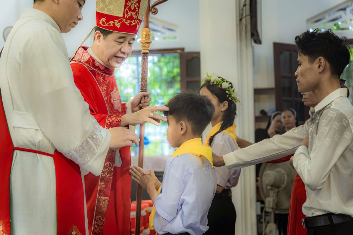 Trong bài giảng, Đức cha Đaminh nhấn mạnh đến chủ đề sống khiêm nhường, điều phù hợp với ý nghĩa của Bí tích Thêm Sức. Ngài mời gọi các em noi gương Chúa Giêsu – mẫu gương trọn hảo của sự khiêm nhường – để trở nên những chứng nhân can đảm và khiêm nhường giữa đời thường. Sau bài giảng, trong bầu khí linh thiêng và trang trọng, Đức cha cùng cha xứ Phaolô đã đặt tay, xức dầu Thánh và cầu nguyện, chính thức ban Bí tích Thêm Sức cho các em.