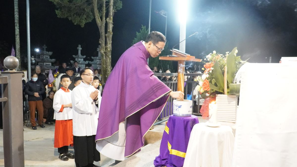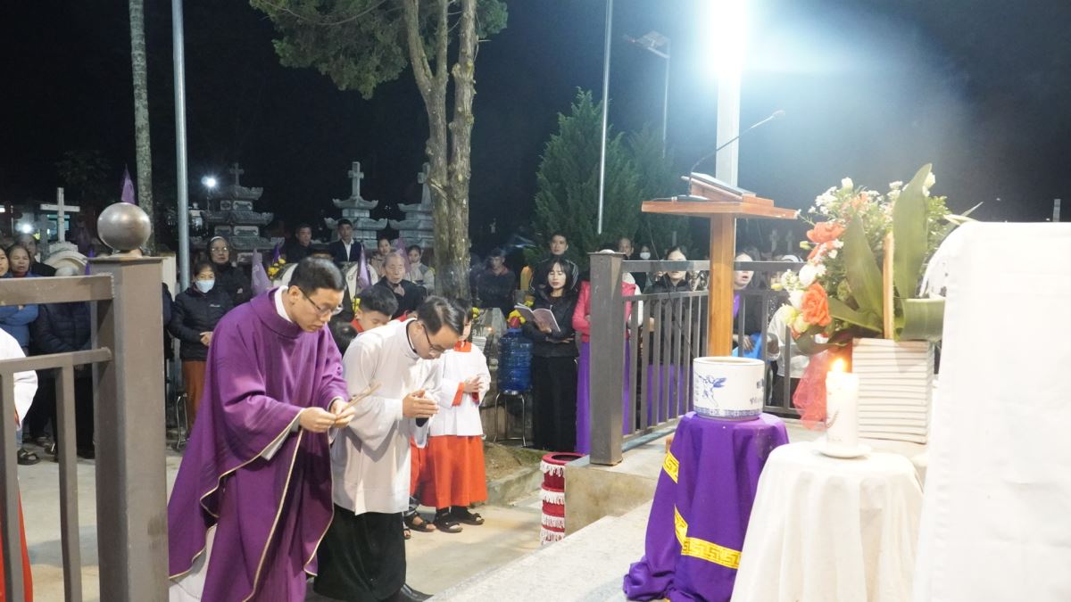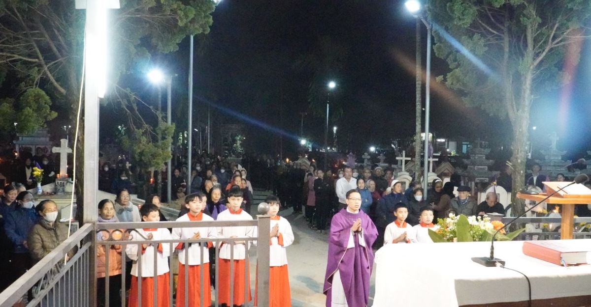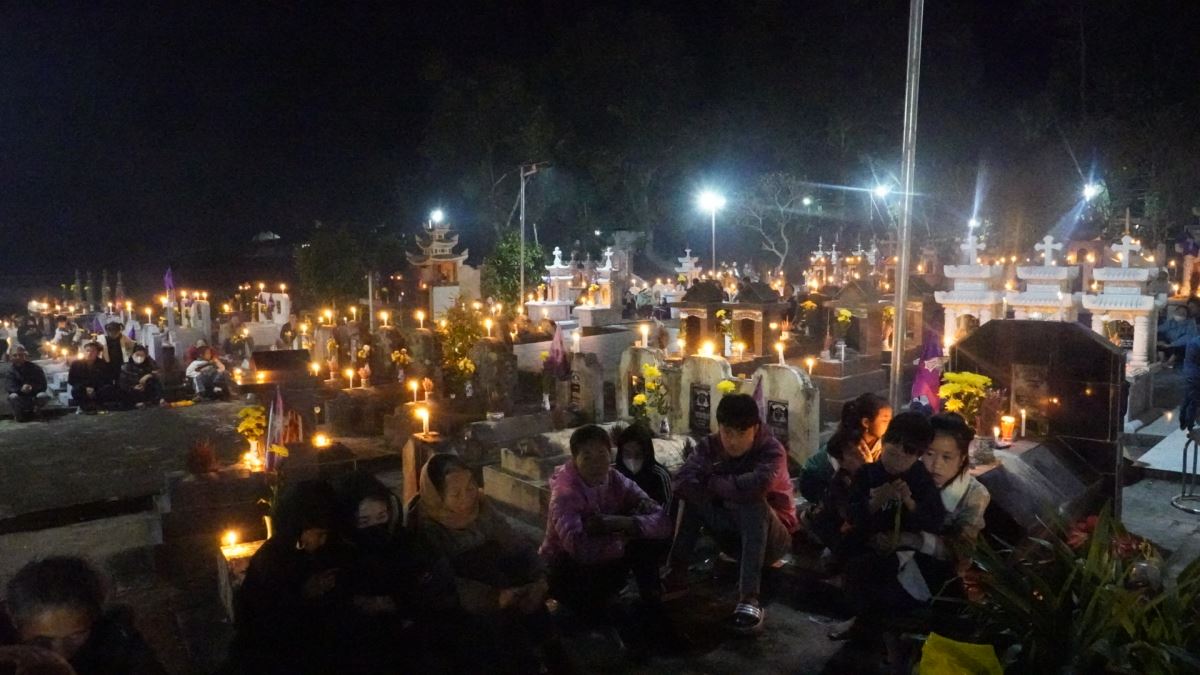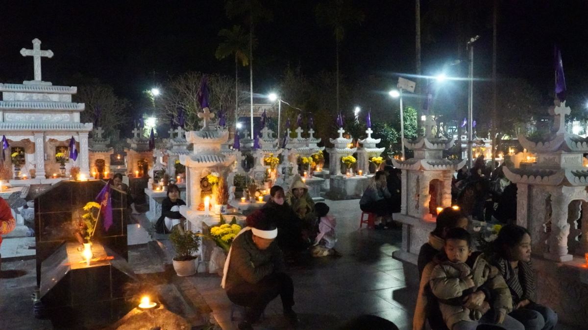 Ánh nến ấm áp từ các phần mộ hòa cùng lời kinh sốt sắng, tạo nên một không gian trang trọng và đầy tình hiệp thông. Tại đây, cộng đoàn cùng tuyên xưng niềm tin vững chắc vào sự sống lại.