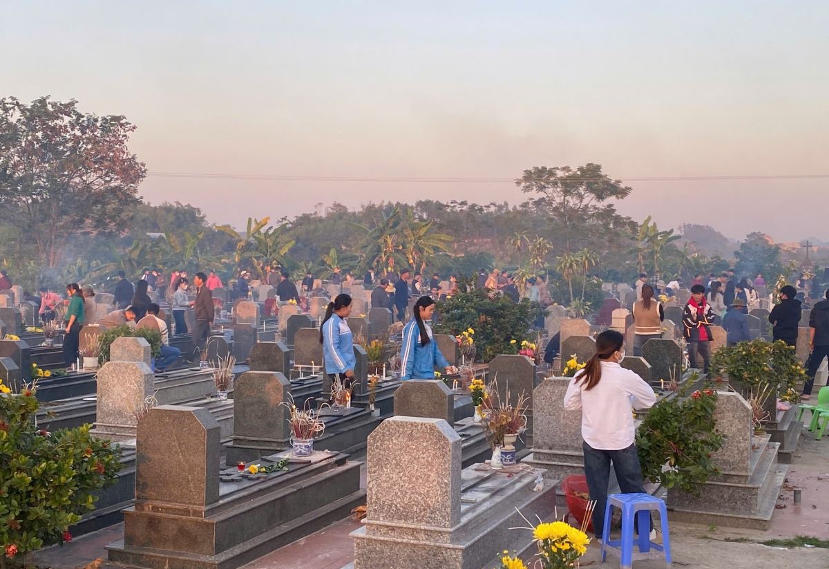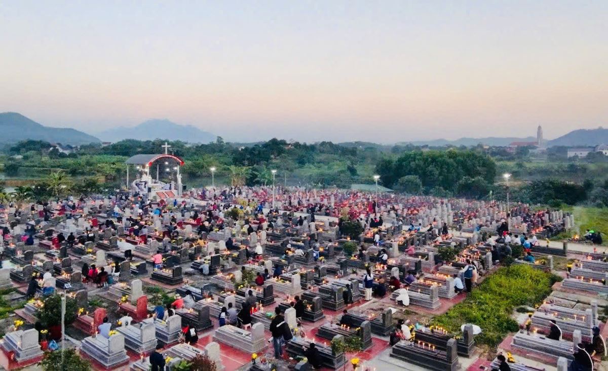 Nơi Vườn Thánh, từng gia đình quây quần bên phần mộ người thân, thắp nén hương, thắp ngọn nến và đặt những đóa hoa tươi bày tỏ tình yêu thương. Những nấm mộ bình yên nhắc nhớ rằng tình thân không hề biến mất, nhưng tiếp tục được sống trong Chúa và khắc sâu trong ký ức của con cháu.