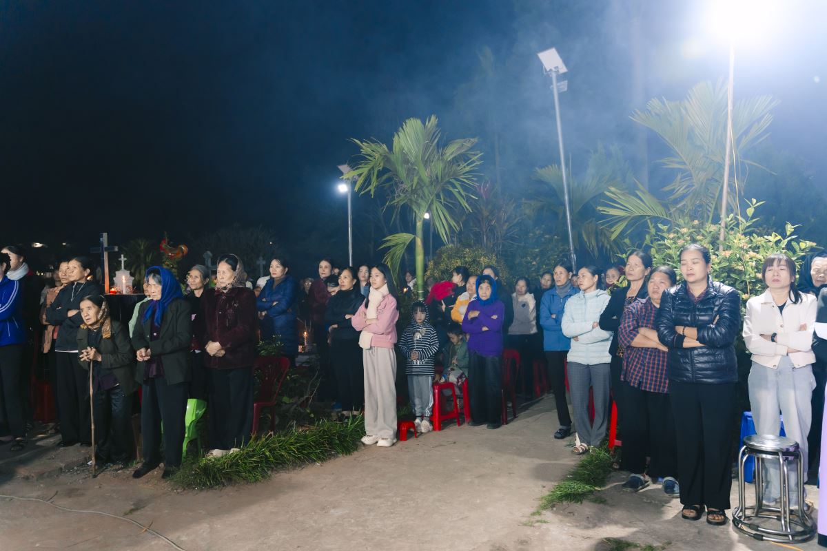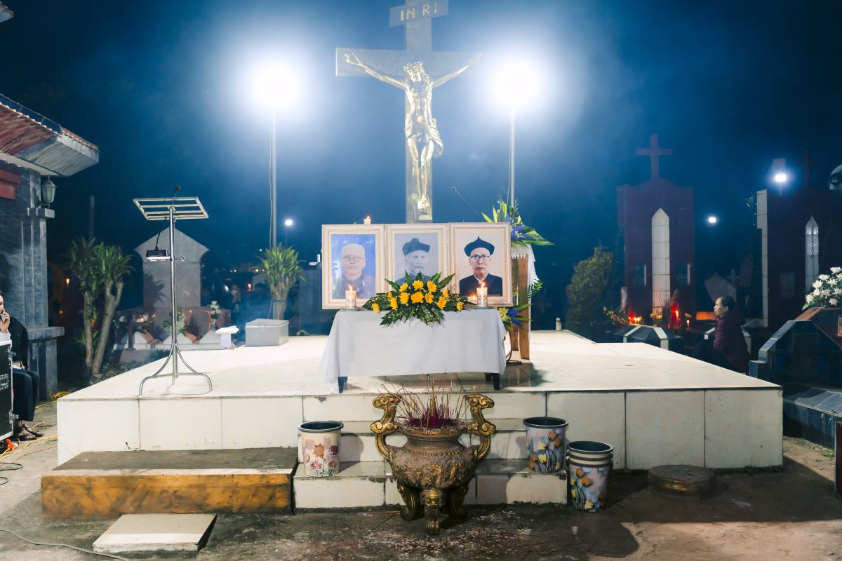 Tiết đầu đông rét ngọt lạnh thấu, nhưng khi hoàng hôn vừa xế tà sau dãy núi xa xa, trên đường làng dẫn về Vườn thánh đã tấp nập từng tốp bà con đi dự lễ. Đèn điện và ánh nến lung linh, hương hoa tỏa ngát, người người đi lại rộn ràng nhộn nhịp. Vườn thánh rực sáng trong đêm như một công viên, không còn cảm thấy bầu khí thê lương, u tịch, lạnh lẽo vốn có giữa thế giới của những kẻ chết. Tiếng thánh ca từ chiếc loa đặt giữa Vườn thánh vang lên niềm hy vọng chan chứa: “Sự sống này chỉ thay đổi mà không mất đi, lúc con người nằm yên giấc ngủ, mắt nhắm lại rồi là thấy tương lai…”