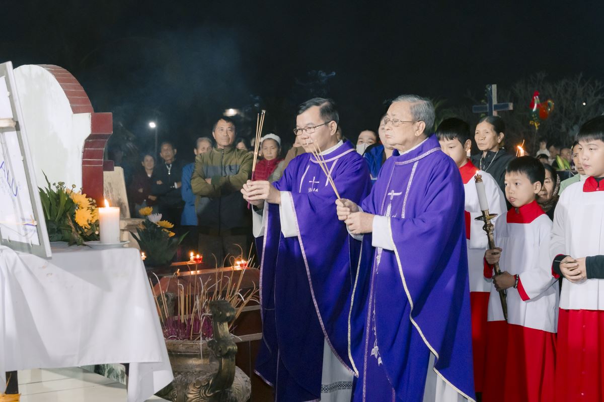 WGPHH - Để tỏ lòng tri ân và cầu nguyện cho quý đấng đã mục vụ và coi sóc đàn chiên giáo xứ Trù Mật, mà nay các ngài đã về với Chúa. Trong tâm tình ấy, vào lúc 19g00 thứ Sáu ngày 28.11.2025, cha xứ Giuse Nguyễn Văn Yêm đã mời cha Phêrô Phùng Văn Tôn – nguyên Tổng đại diện giáo phận về chủ sự và đồng tế Thánh lễ cầu cho quý đấng tại Vườn thánh Gò Chắt của giáo xứ. Hiệp dâng Thánh lễ, có quý dì, quý Hội đồng giáo xứ, quý Ban hành giáo, quý các hội đoàn và rất đông bà con trong giáo xứ.