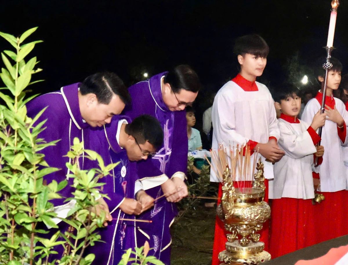 WGPHH – Trong tâm tình tháng 11, tháng mà Giáo Hội dành riêng để tưởng nhớ và cầu nguyện cho các tín hữu đã qua đời, vào lúc 19g00 ngày 10 tháng 11 năm 2025, tại Vườn Thánh Giáo xứ Thủy Trạm, Cha Giuse Dương Trung Phương – người con quê hương Thủy Trạm đã chủ sự Thánh lễ cầu nguyện cho các linh hồn đã an nghỉ trong Chúa nơi đây.