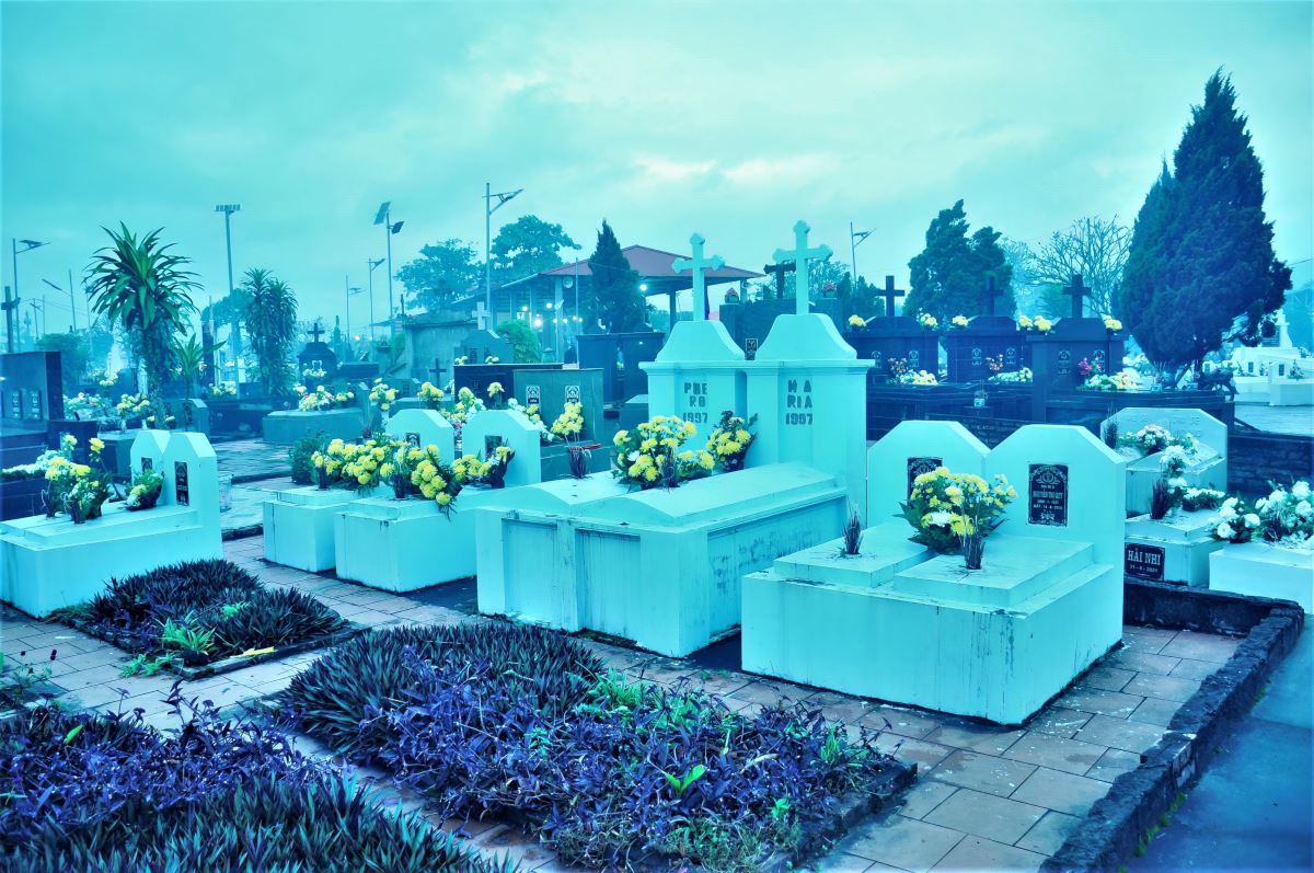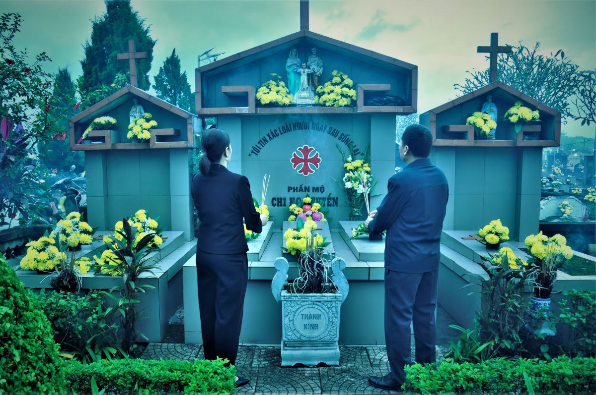 WGPHH – Trong những ngày chuẩn bị cho Thánh lễ cầu nguyện các tín hữu đã qua đời, tại nghĩa trang Hoàng Xá – Trại Sơn, các gia đình thuộc hai giáo xứ đã cùng nhau đến quét dọn, tu sửa, cắm hoa và thắp nến trên từng phần mộ người thân. Từng lối đi được quét sạch, cỏ cây được cắt tỉa gọn gàng, muôn ánh nến lung linh tỏa sáng trong đêm như nối kết giữa người sống và người đã khuất. Bầu khí yên bình, trầm mặc nhưng chan chứa tình người, tình đạo.