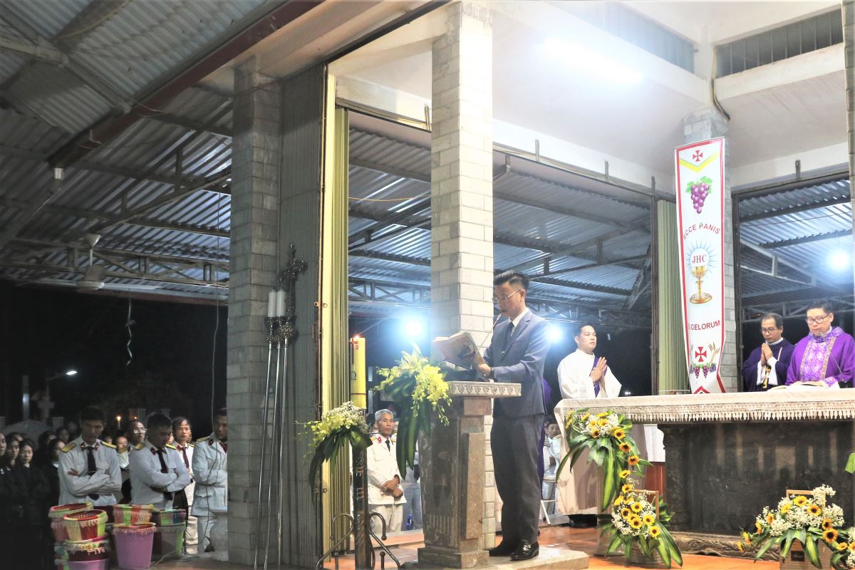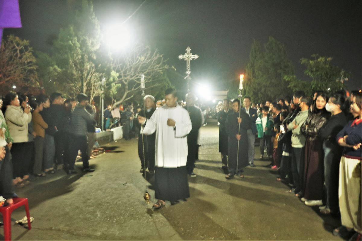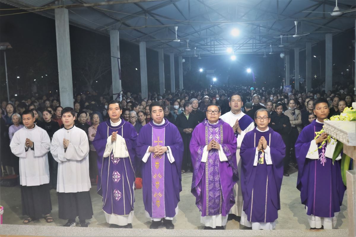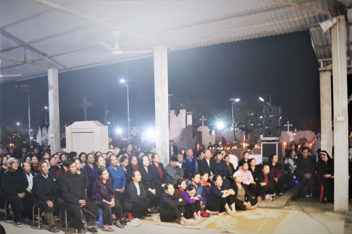 Vào lúc 19g30 ngày 01.11.2025, tại nhà an táng nghĩa trang, cha Antôn Vũ Thái San, Trưởng hạt Tây Nam Phú Thọ, cũng là cha chính xứ Hoàng Xá – Trại Sơn, đã long trọng chủ sự Thánh lễ cầu nguyện cho các tín hữu đã qua đời. Đồng tế với ngài có quý cha hai giáo xứ Hoàng Xá và Trại Sơn. Tham dự Thánh lễ có quý thầy, quý dì, cùng đông đảo cộng đoàn dân Chúa gần xa và cả bà con tôn giáo bạn.