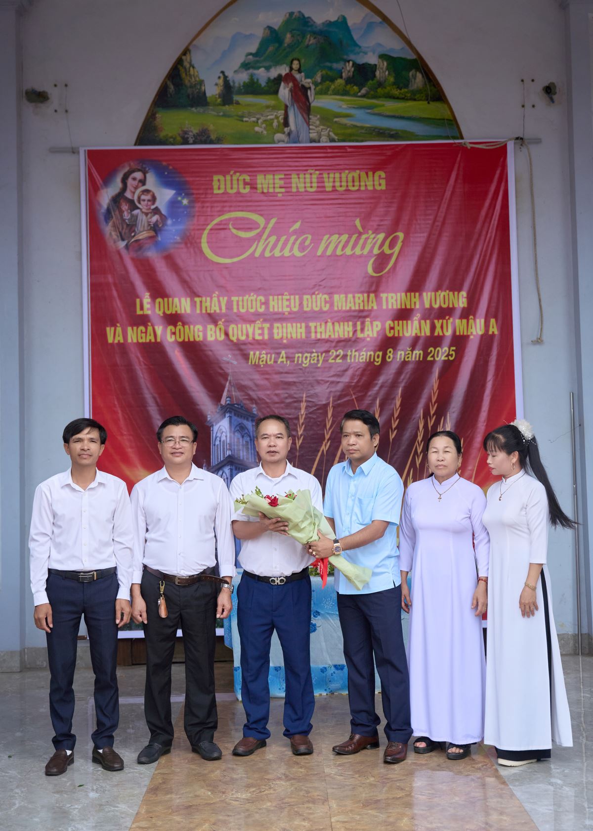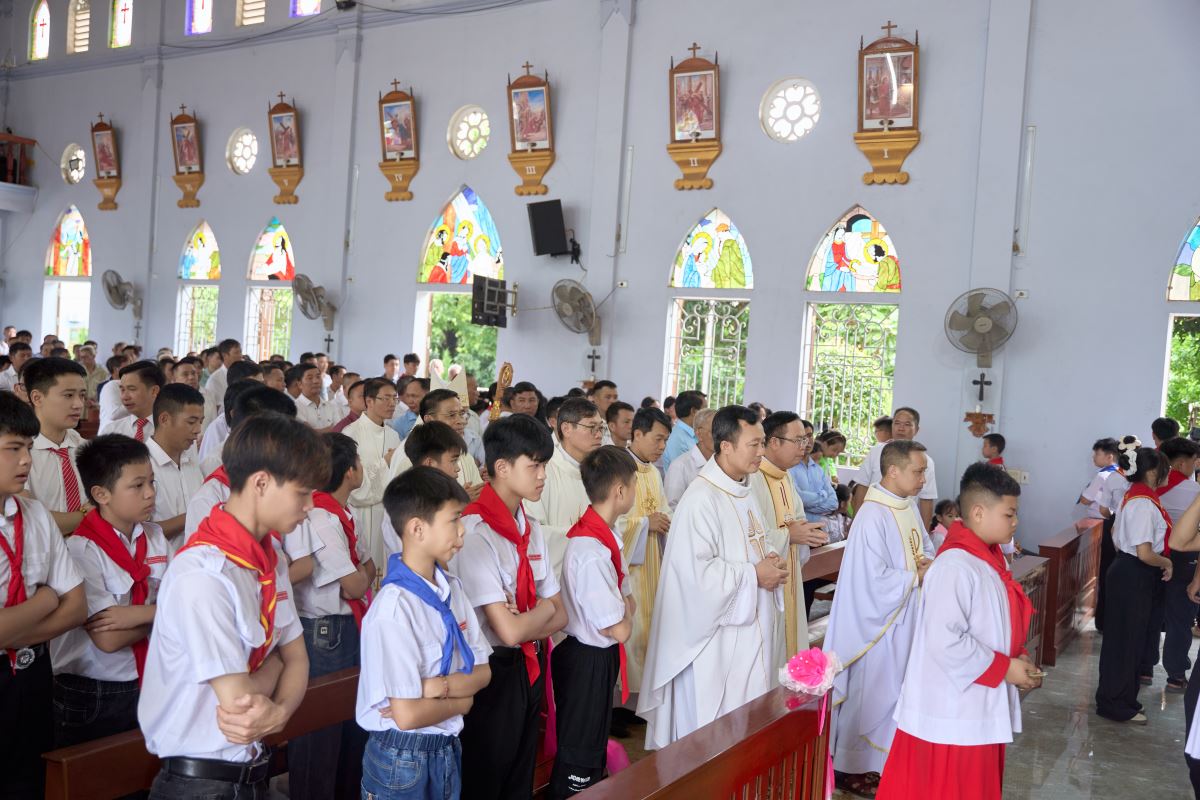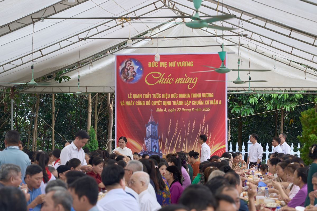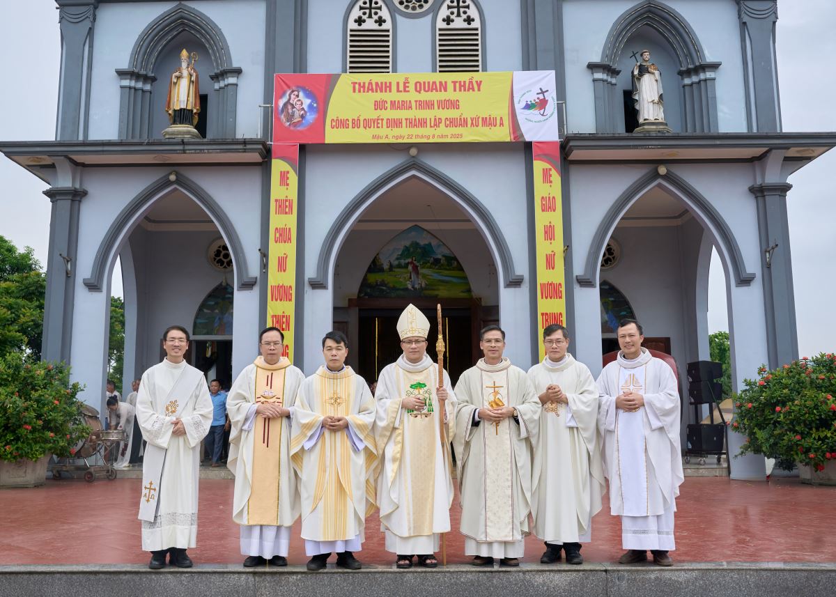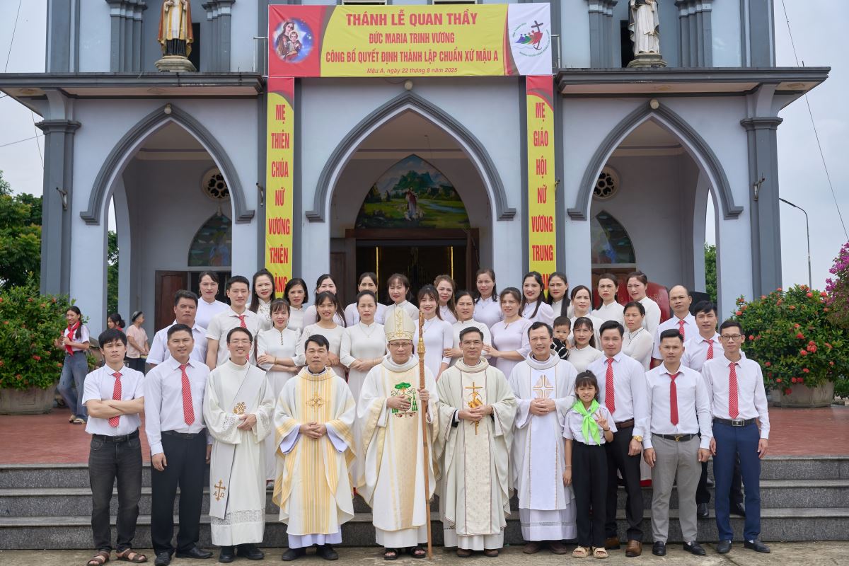 WGPHH - Trong niềm vui lễ Đức Maria Nữ Vương, bổn mạng Chuẩn xứ Mậu A, sáng ngày 22/8/2025, cộng đoàn dân Chúa hân hoan tổ chức Thánh lễ công bố quyết định thành lập Chuẩn xứ Mậu A. Thánh lễ do Đức Cha Phaolô Nguyễn Quang Đĩnh – Giám mục Phụ tá Giáo phận Hưng Hóa chủ sự, cùng đồng tế có Cha Quản hạt Phêrô Phạm Thanh Bình, Cha xứ Phêrô Phan Kim Huấn, quý Cha trong giáo hạt. Hiệp thông trong Thánh lễ có quý thầy, quý dì, đại diện chính quyền địa phương, đại diện giáo hạt, các giáo xứ, giáo họ bạn và đông đảo giáo dân về chung niềm vui.