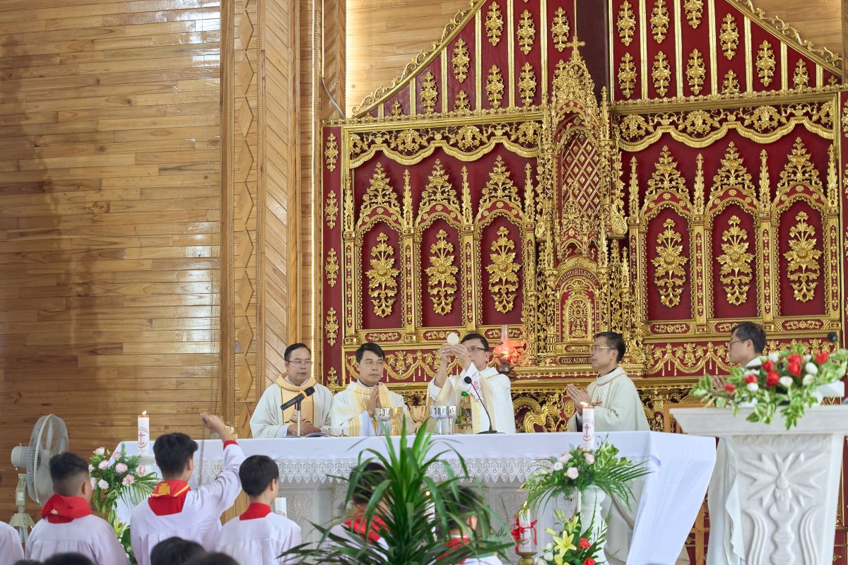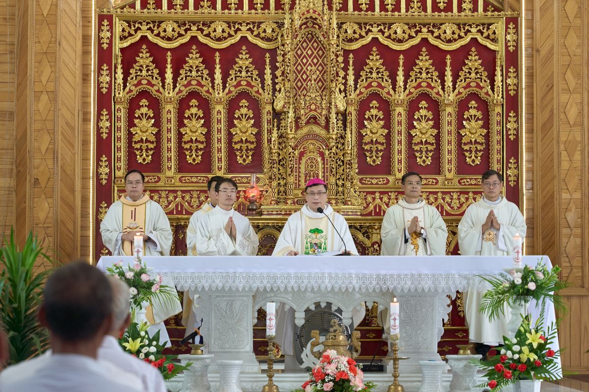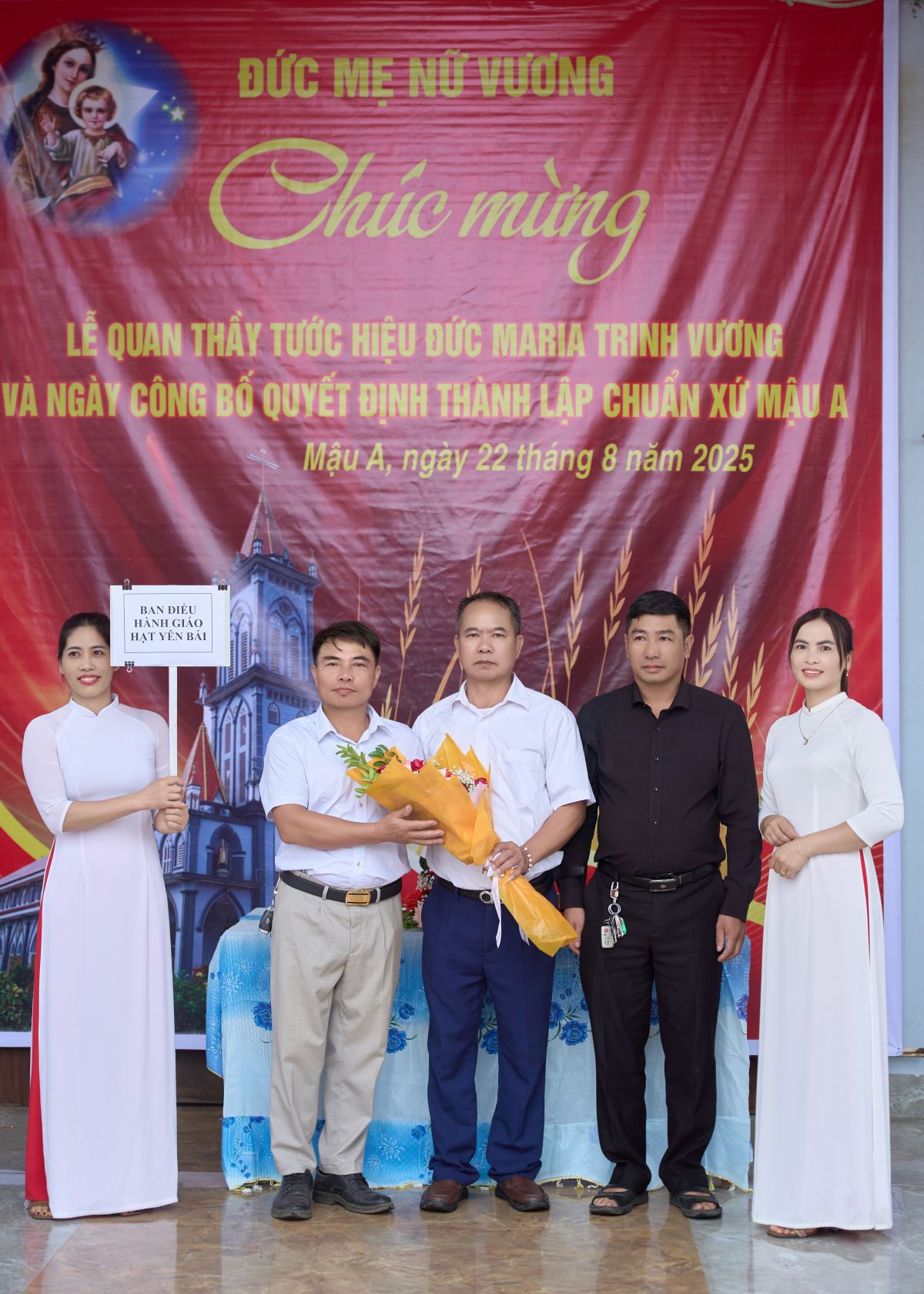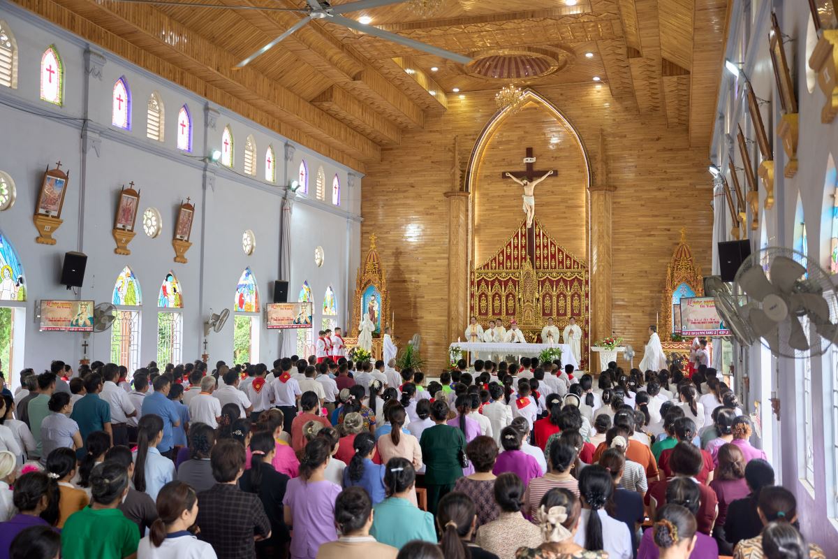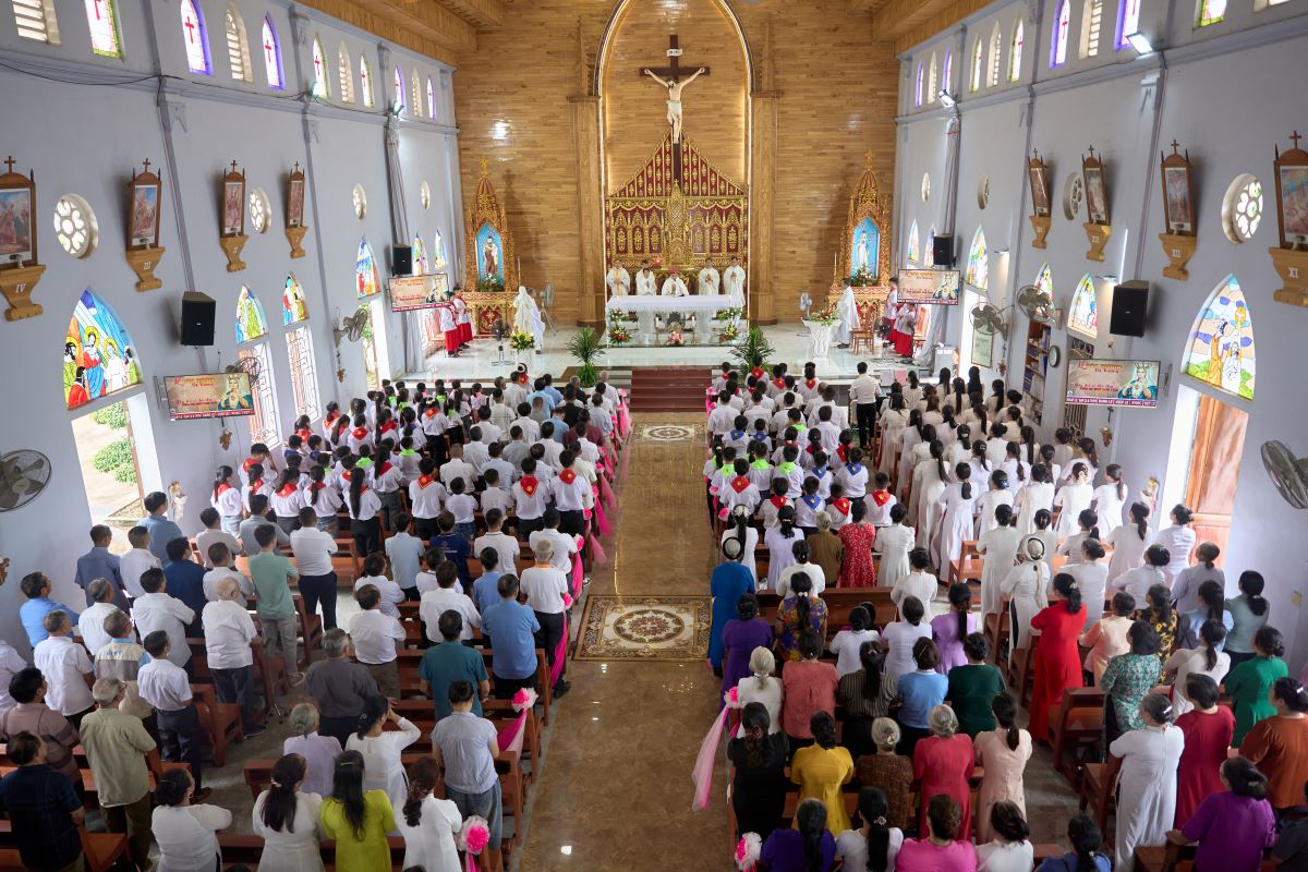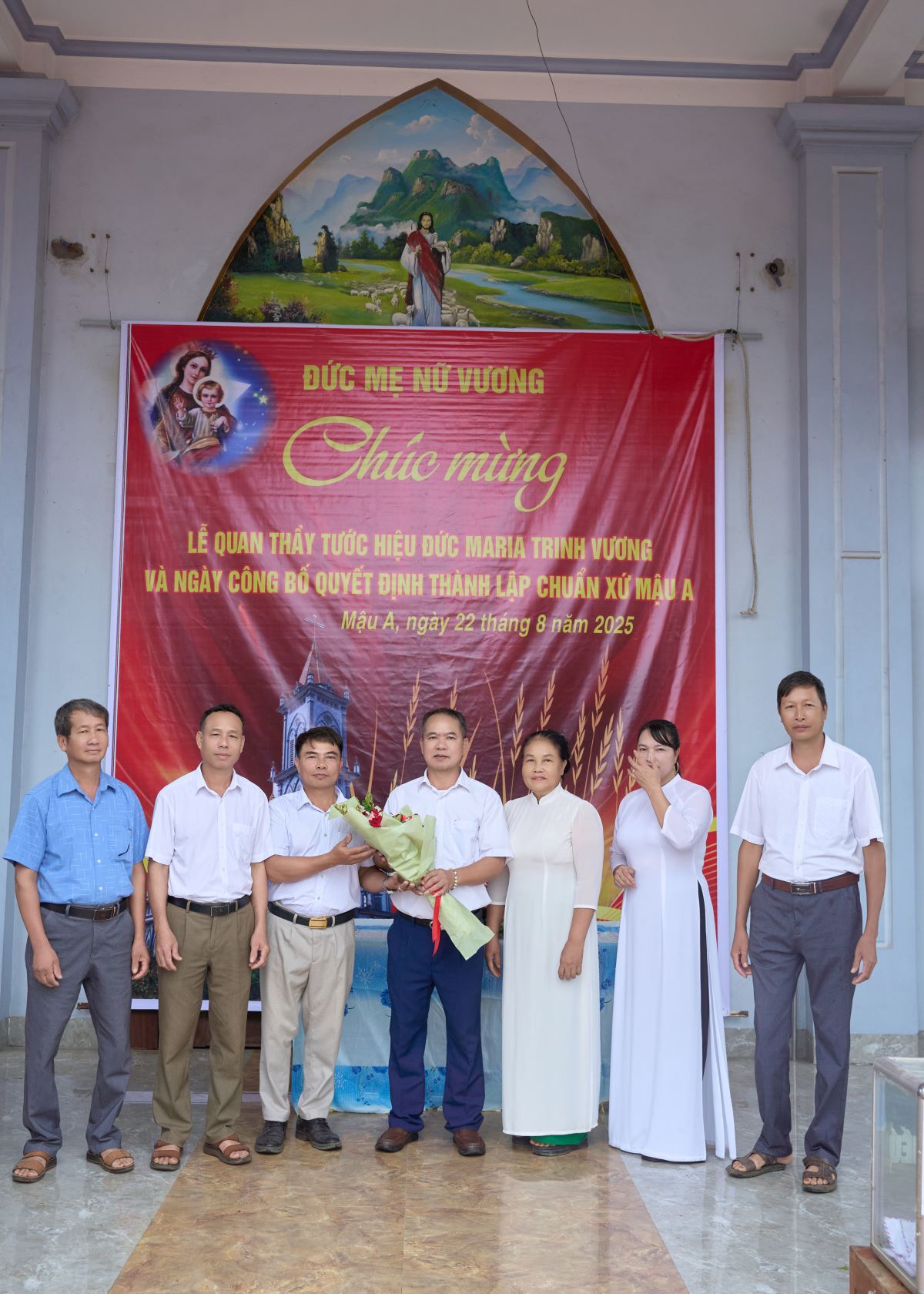 WGPHH - Trong niềm vui lễ Đức Maria Nữ Vương, bổn mạng Chuẩn xứ Mậu A, sáng ngày 22/8/2025, cộng đoàn dân Chúa hân hoan tổ chức Thánh lễ công bố quyết định thành lập Chuẩn xứ Mậu A. Thánh lễ do Đức Cha Phaolô Nguyễn Quang Đĩnh – Giám mục Phụ tá Giáo phận Hưng Hóa chủ sự, cùng đồng tế có Cha Quản hạt Phêrô Phạm Thanh Bình, Cha xứ Phêrô Phan Kim Huấn, quý Cha trong giáo hạt. Hiệp thông trong Thánh lễ có quý thầy, quý dì, đại diện chính quyền địa phương, đại diện giáo hạt, các giáo xứ, giáo họ bạn và đông đảo giáo dân về chung niềm vui.