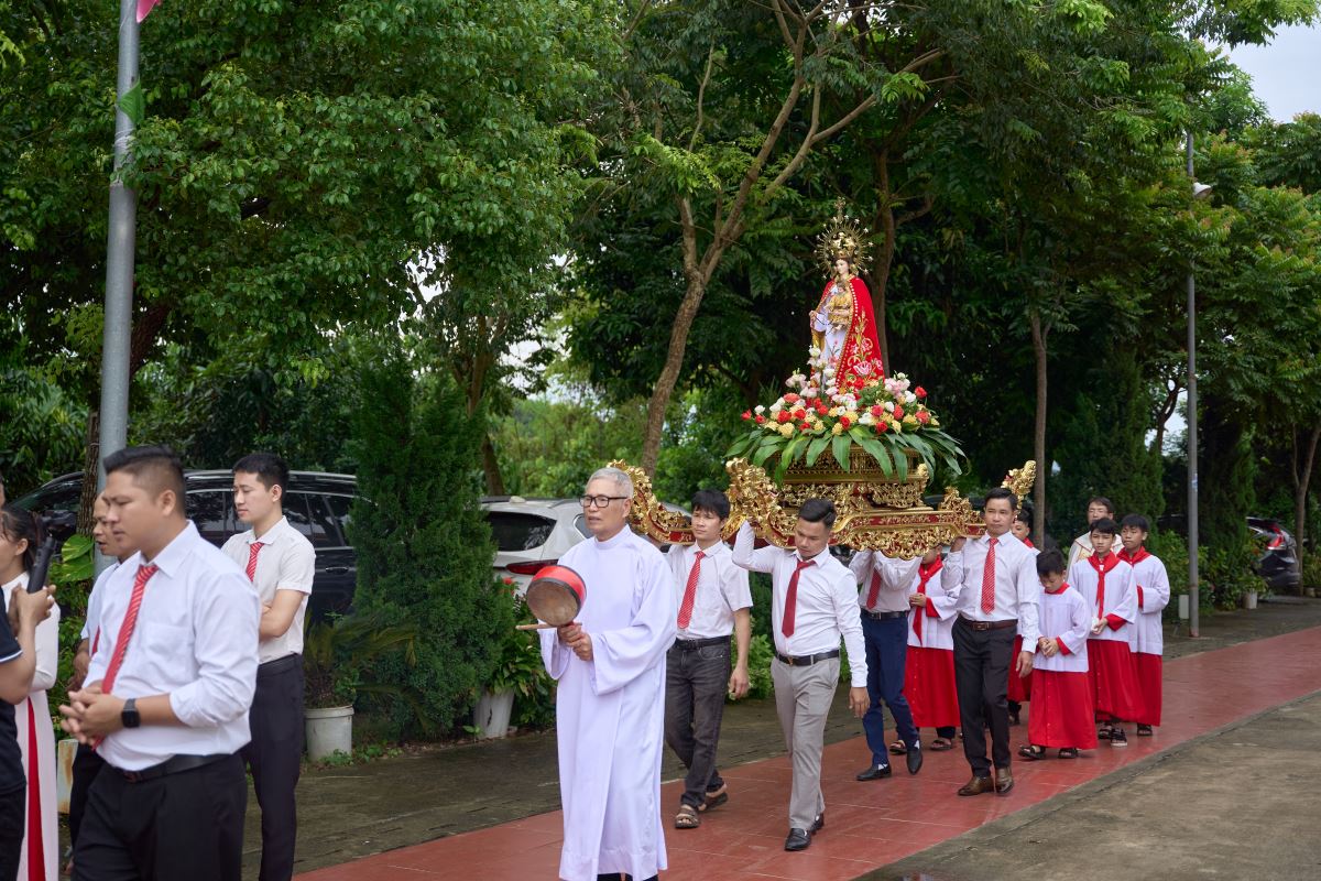 Trong ngày lễ Đức Maria Nữ Vương - bổn mạng chuẩn xứ, cuộc rước tôn vinh Mẹ diễn ra trang nghiêm và đầy cảm xúc: đi đầu là đội trống, kế đến là bình hương, Thánh giá và nến trụ dẫn lối cộng đoàn tiến vào thánh đường. Tiếng kèn vang rộn rã, các em thiếu nhi Thánh Thể trong tà áo trắng hân hoan bước đi, các hội đoàn sốt sắng dâng lời cầu nguyện, ca đoàn cất cao lời ca chúc tụng. Trong sự dẫn dắt của Thầy phó tế, đoàn con cái Mẹ hân hoan tiến vào nhà Chúa, cùng nhau tôn vinh Nữ Vương Thiên Quốc.