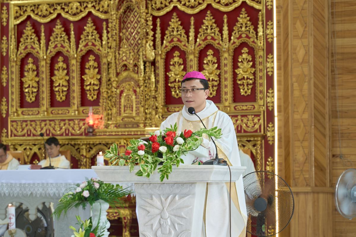 Trong bài giảng lễ, Đức Cha gợi lại hình ảnh trong tự nhiên: có loài cây sinh hạt để mọc thành cây mới, cũng có loài cây mọc măng từ gốc điều vượt ngoài lý giải tự nhiên khiến người ta phải nại đến trời. Ngài liên hệ: nơi Đức Maria, chúng ta thấy những đặc ân vượt trên tự nhiên, là dấu chỉ cho niềm tin. Mẹ chính là cửa dẫn đưa chúng ta vào Thiên Đàng. Đức Cha nhấn mạnh, việc có Mẹ đồng hành là ân phúc, đồng thời mời gọi cộng đoàn ý thức ơn gọi Kitô hữu, chung tay xây dựng chuẩn xứ trong tinh thần hiệp nhất, yêu thương và nhiệt thành loan báo Tin Mừng.