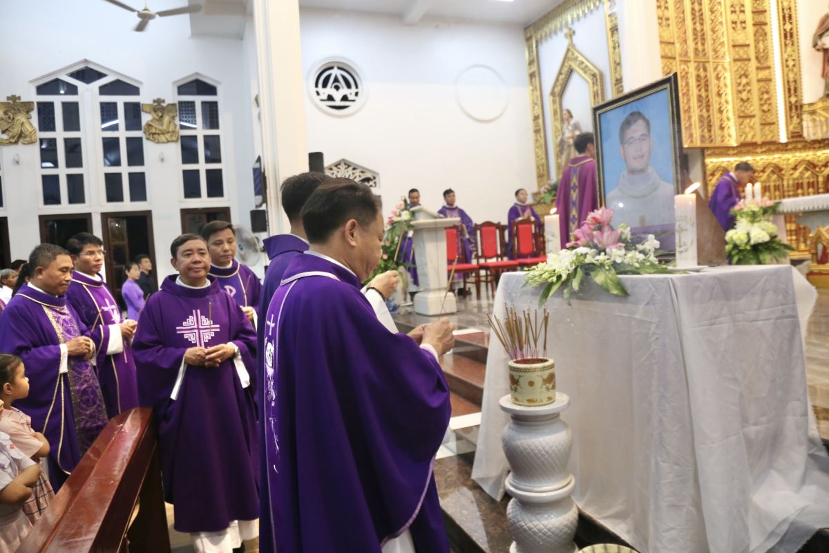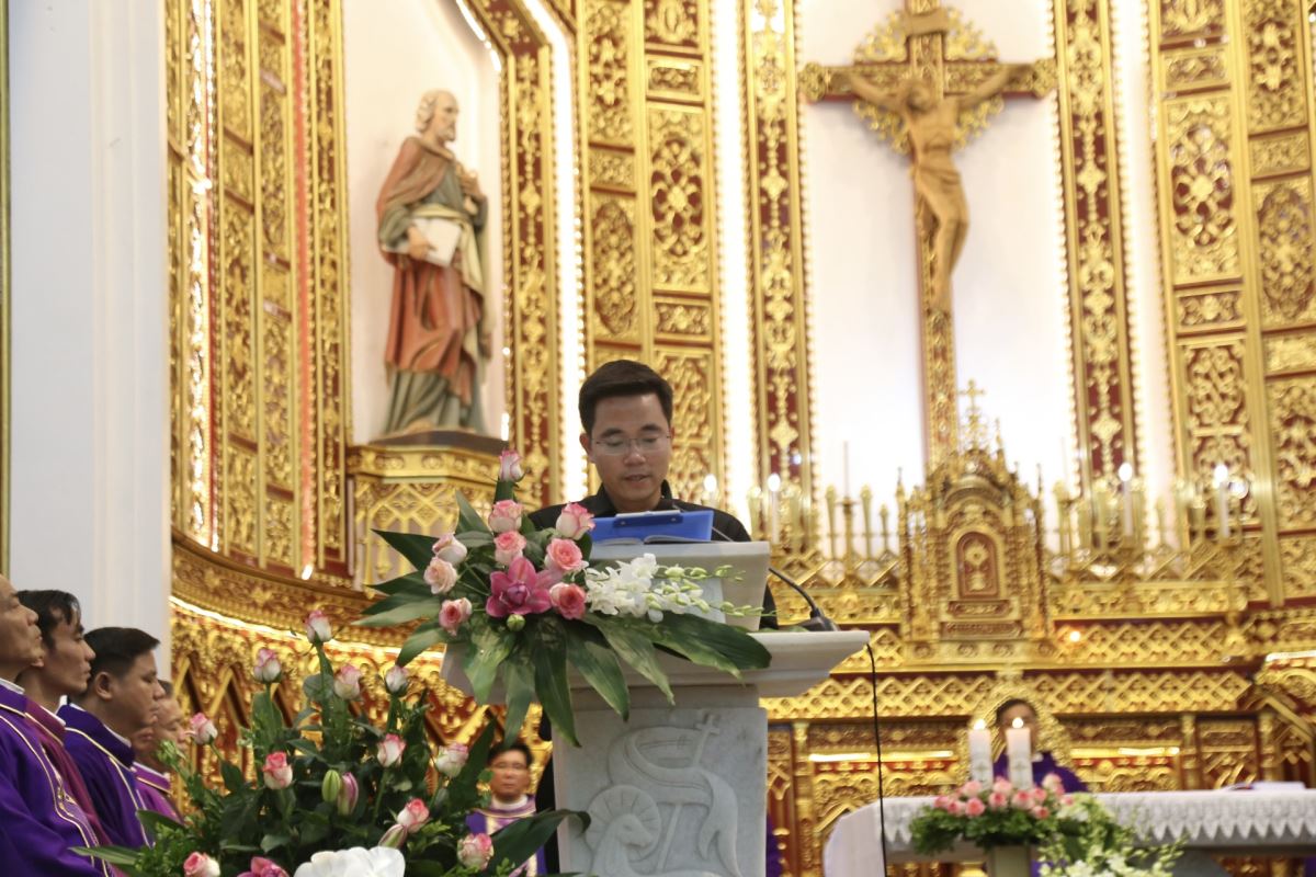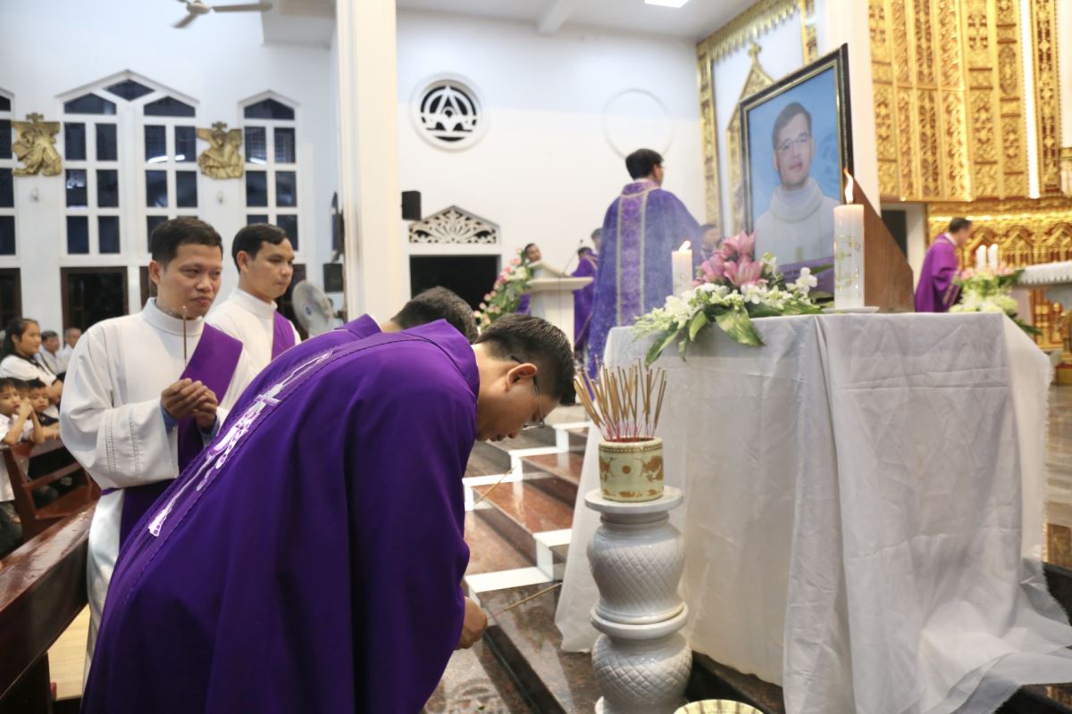 Mở đầu Thánh lễ, Cha chủ tế đã gợi lại hình ảnh Cha Giuse – một vị mục tử hiền lành, khiêm nhường, giản dị. Với 46 năm tuổi đời và 6 năm trong thiên chức linh mục, ngài đã tận tụy dấn thân phục vụ, đặc biệt trong những ngày cuối đời vẫn không ngừng quan tâm, thăm hỏi và nâng đỡ cộng đoàn nơi ngài phục vụ.
