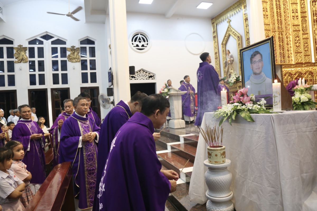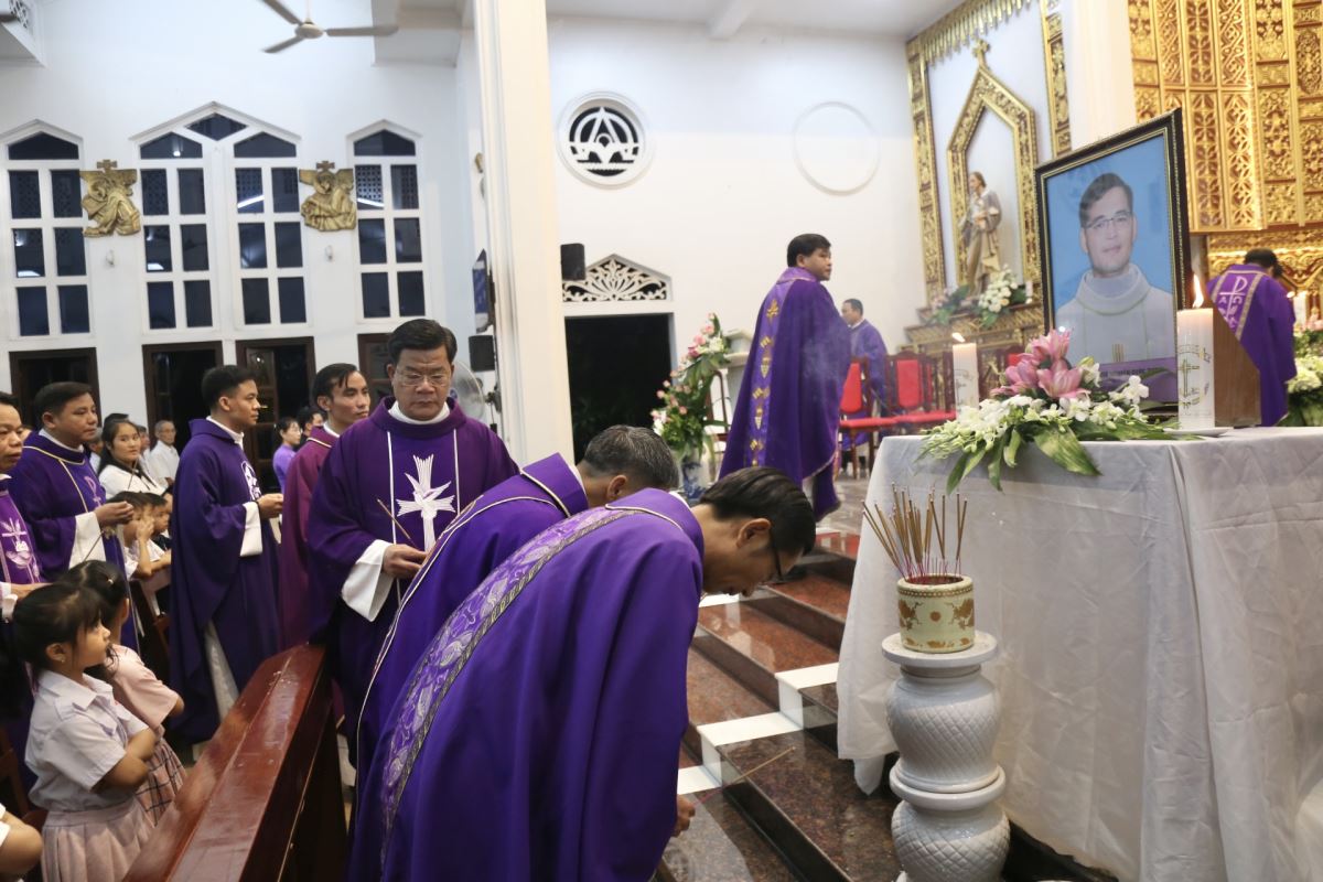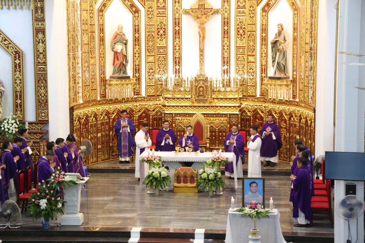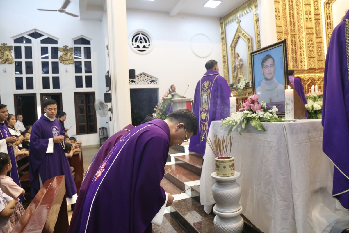 Mở đầu Thánh lễ, Cha chủ tế đã gợi lại hình ảnh Cha Giuse – một vị mục tử hiền lành, khiêm nhường, giản dị. Với 46 năm tuổi đời và 6 năm trong thiên chức linh mục, ngài đã tận tụy dấn thân phục vụ, đặc biệt trong những ngày cuối đời vẫn không ngừng quan tâm, thăm hỏi và nâng đỡ cộng đoàn nơi ngài phục vụ.